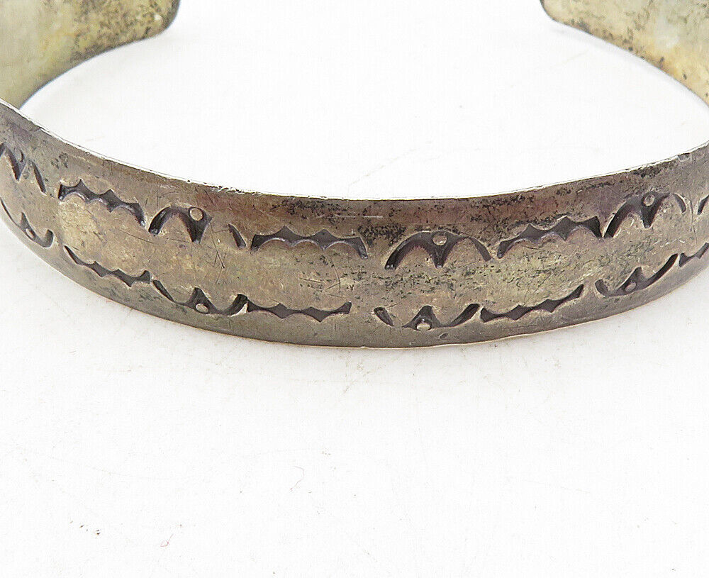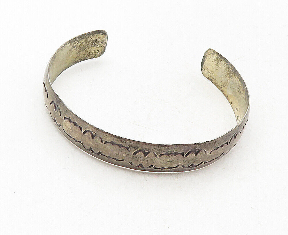925 Sterling Silver - Vintage Antique Dark Tone Etched Cuff Bracelet - BT4099