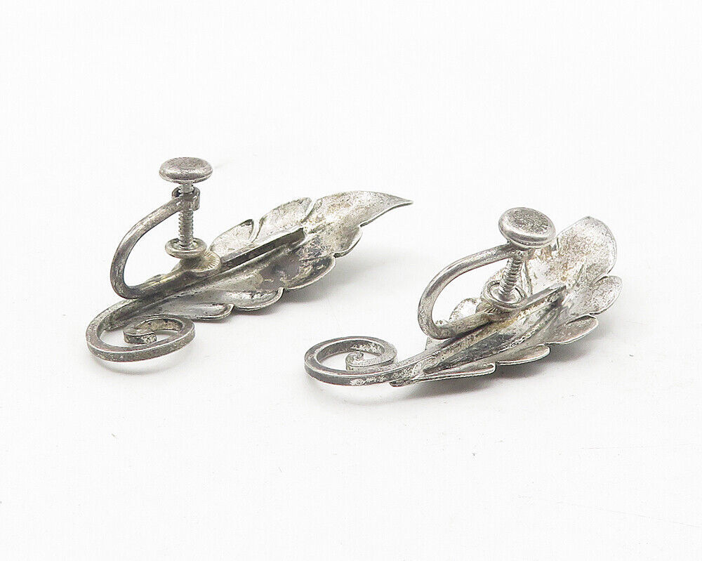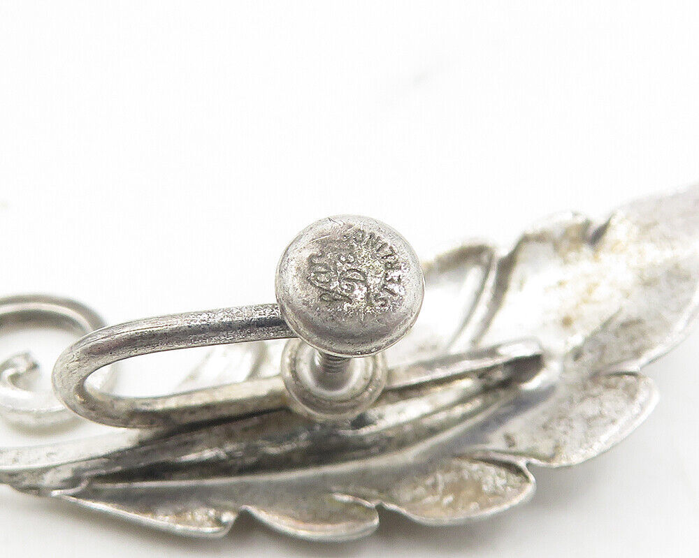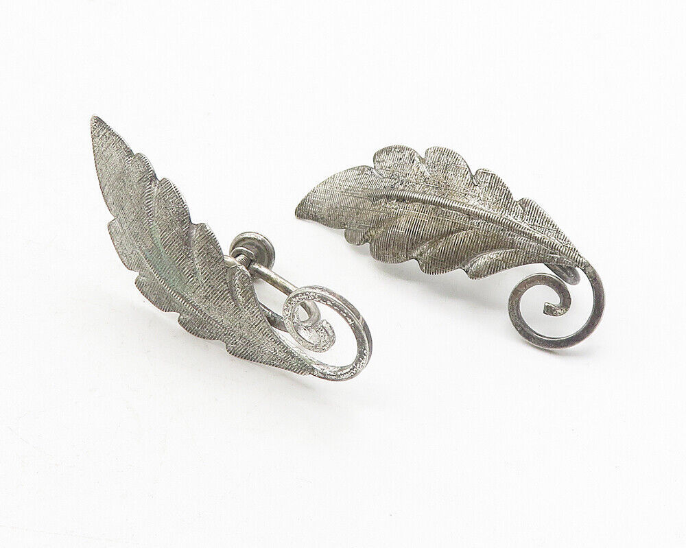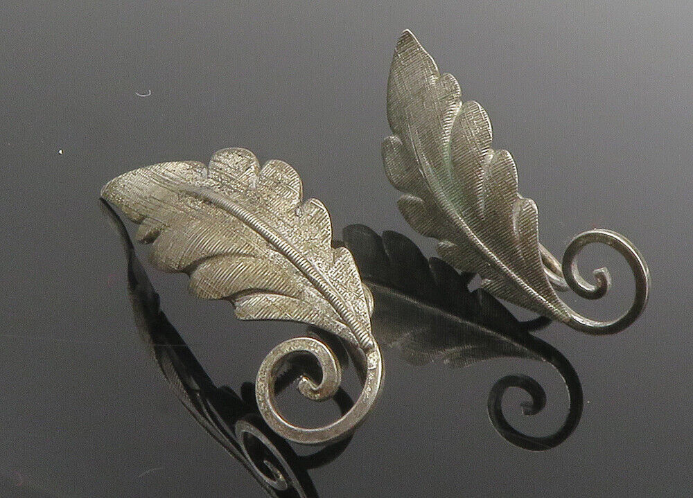 VAN DELL 925 Silver - Vintage Swirl Floral Leaf Non Pierce Earrings - EG6058