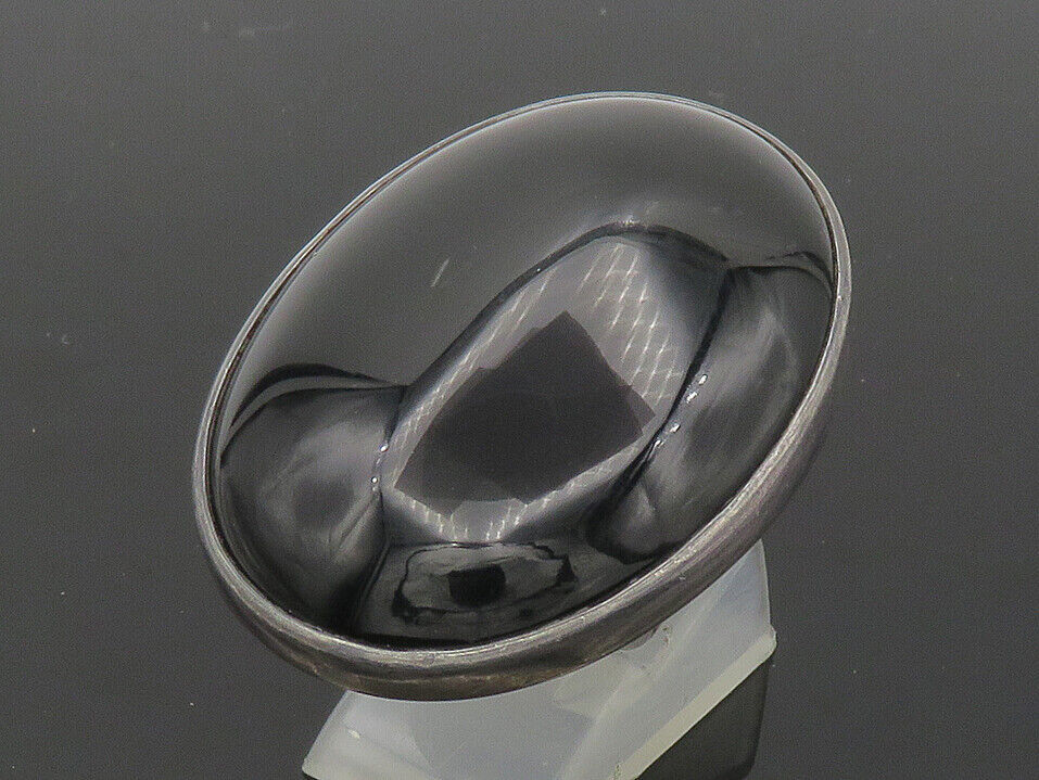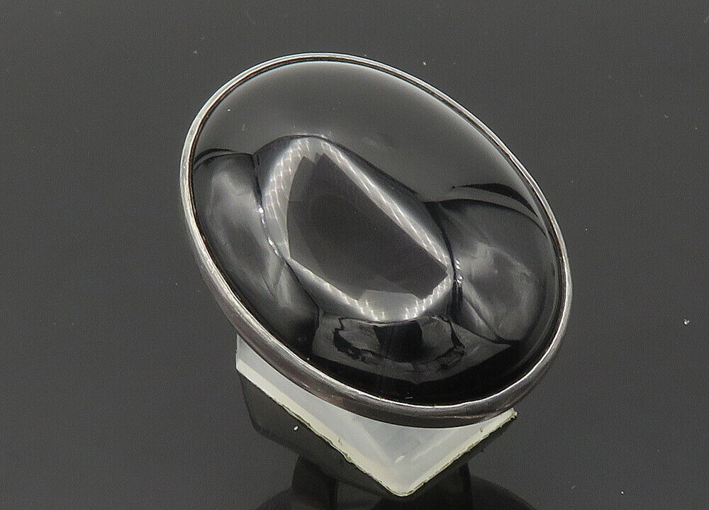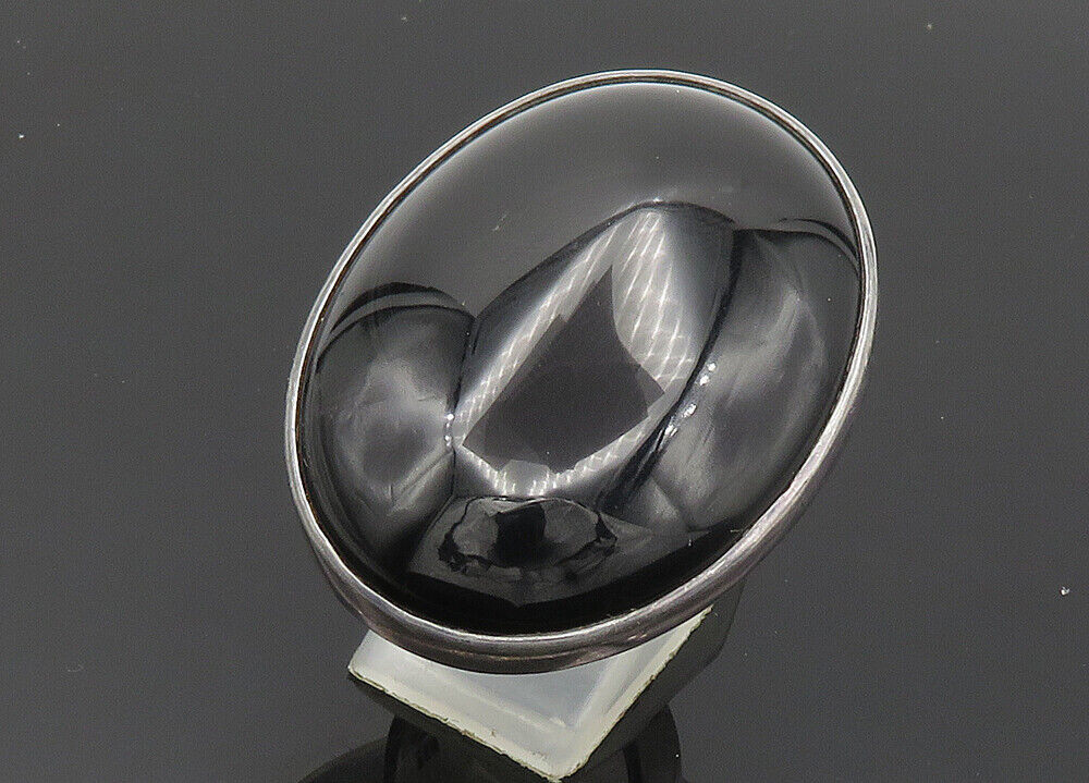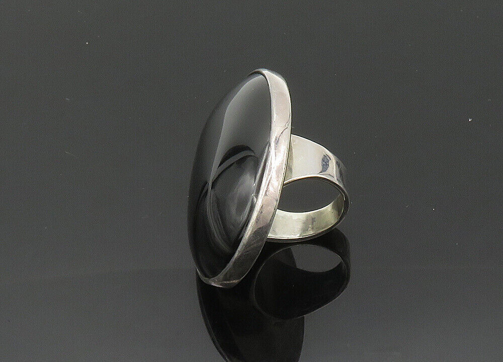 925 Silver - Vintage Black Onyx Large Heavy Cocktail Ring Sz 5.5 - RG20435