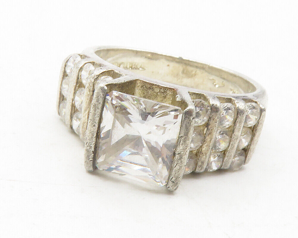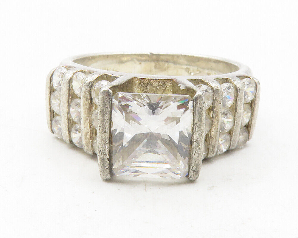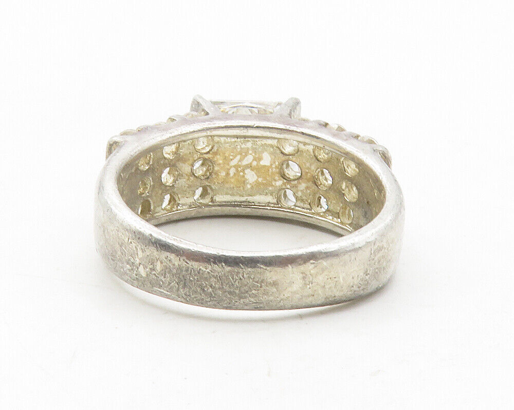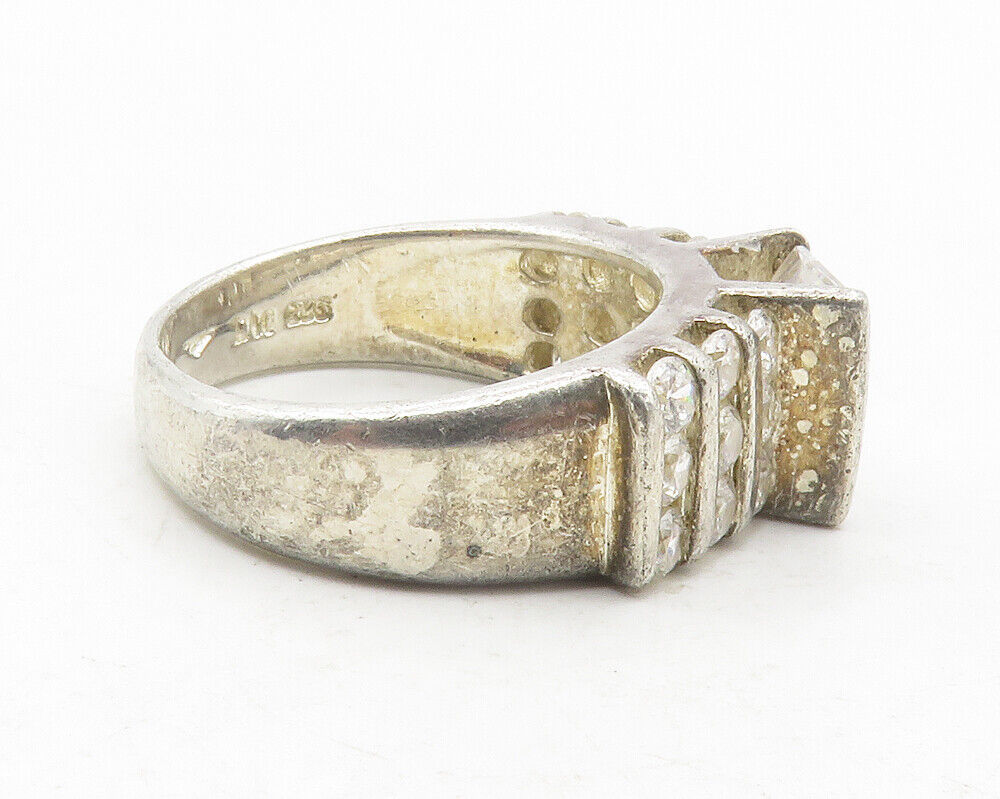 925 Sterling Silver - Vintage Bezel Set Cubic Zirconia Band Ring Sz 7.5- RG12072