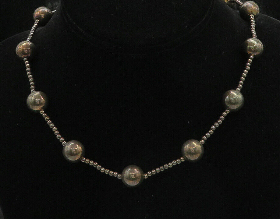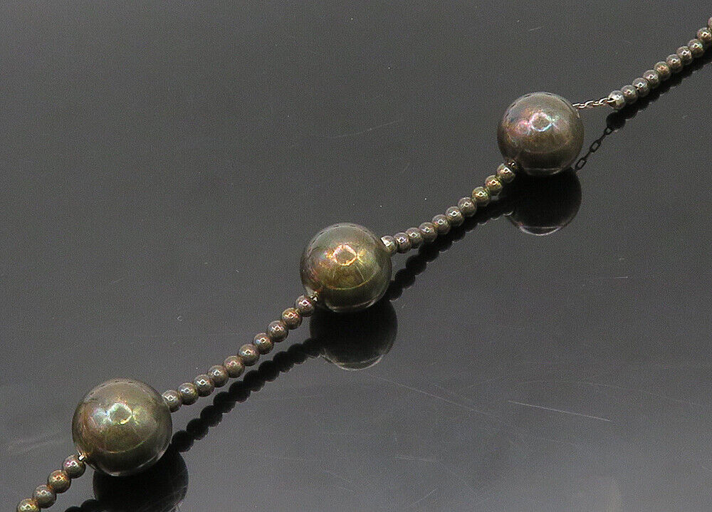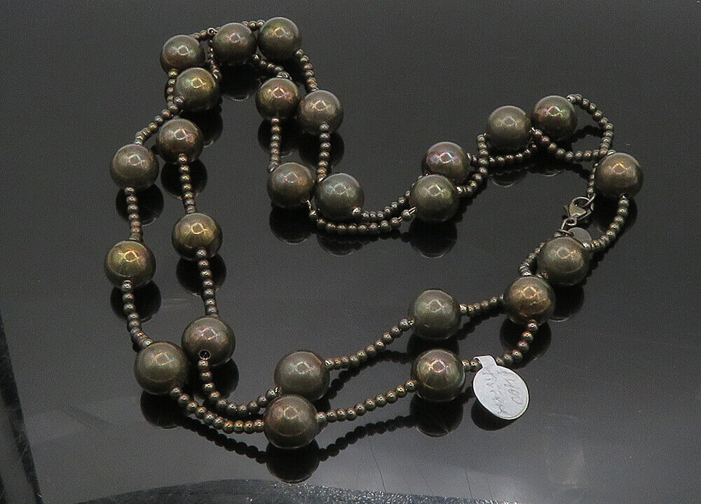 TIFFANY 925 Silver - Vintage Shiny Brown Pearls Beaded Chain Necklace - NE3309