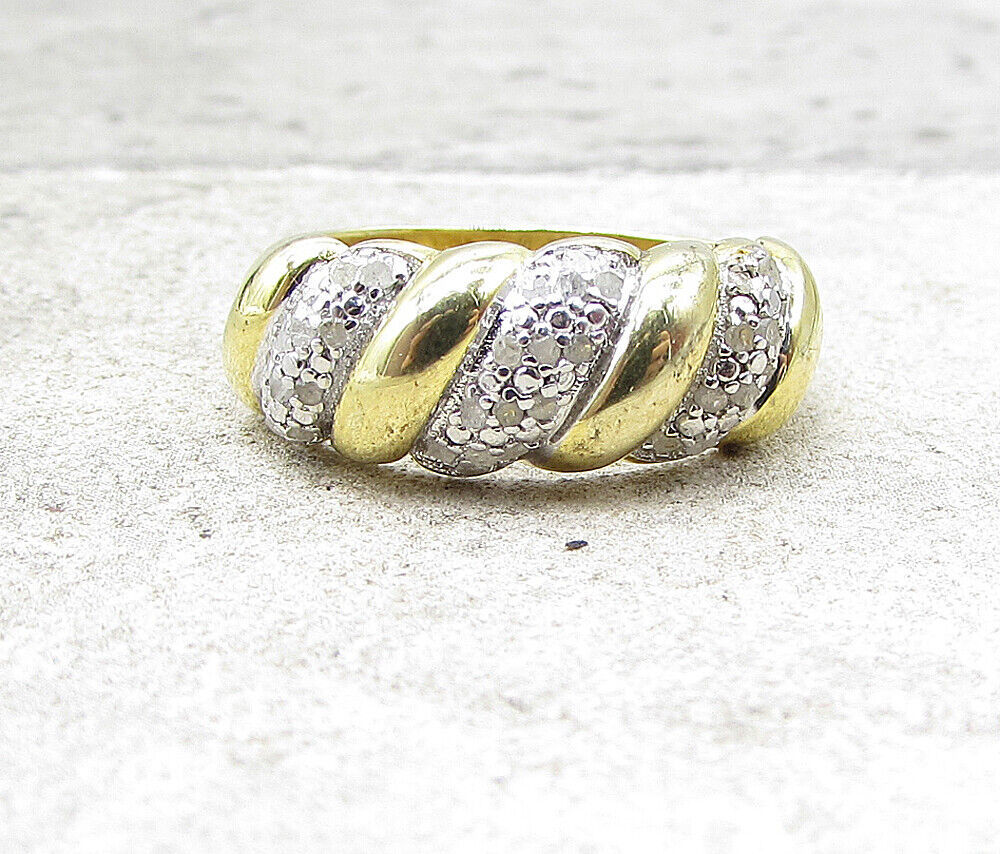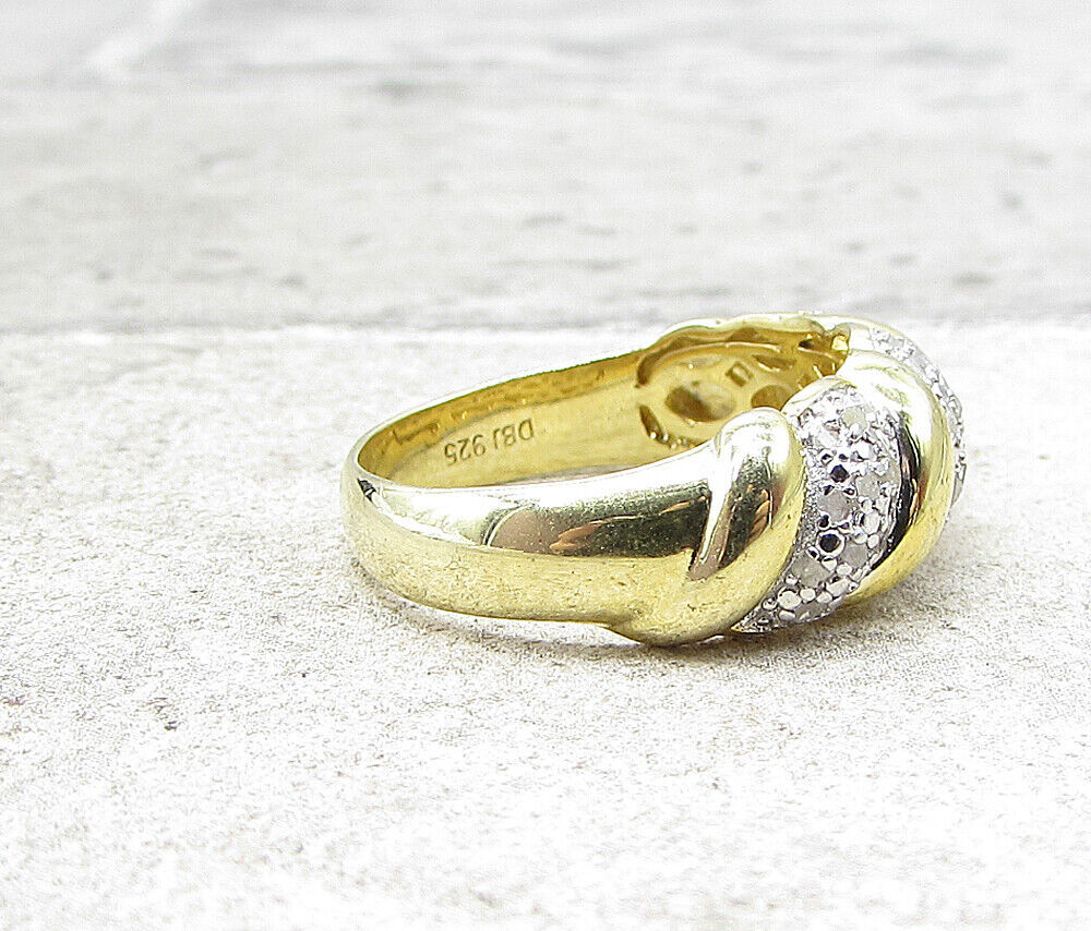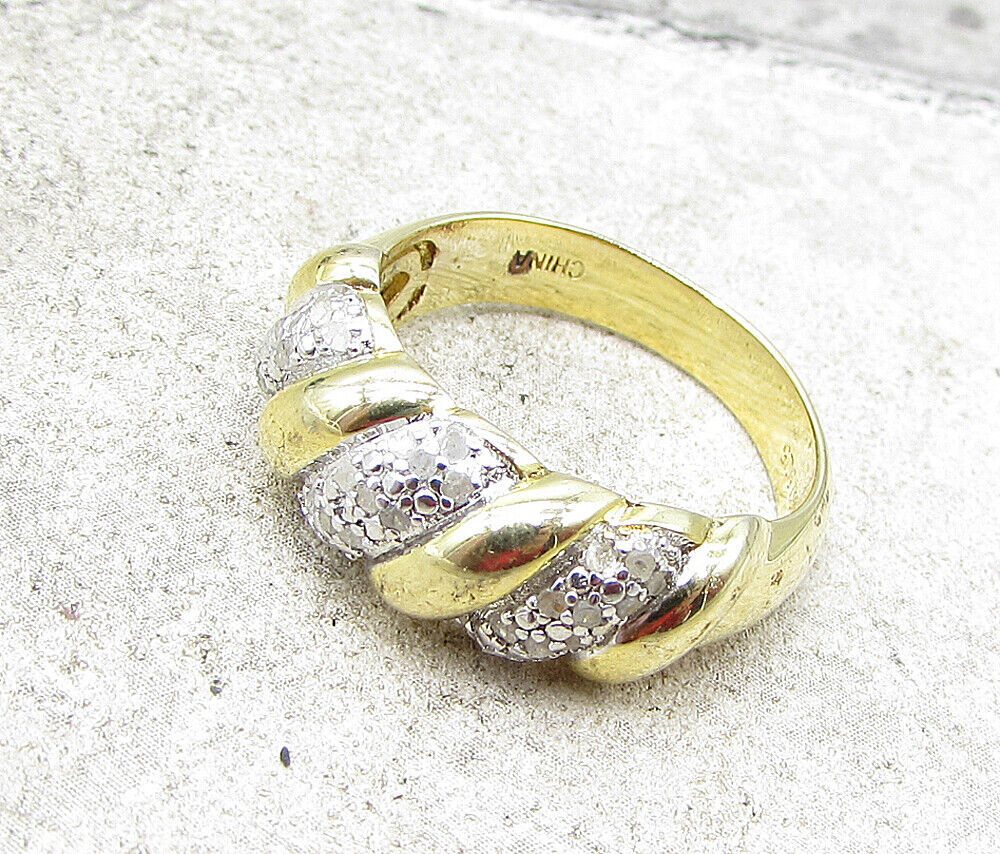 Gold Over 925 Silver - .35ctw Genuine Diamonds Cloudy Band Ring Sz 7 - RG1706