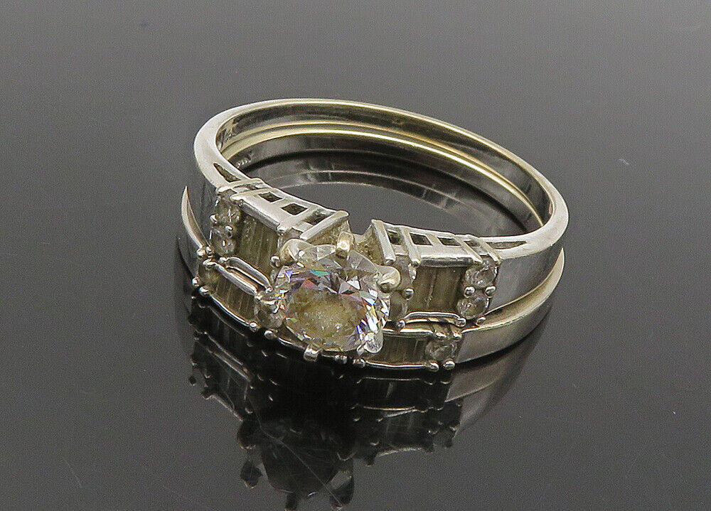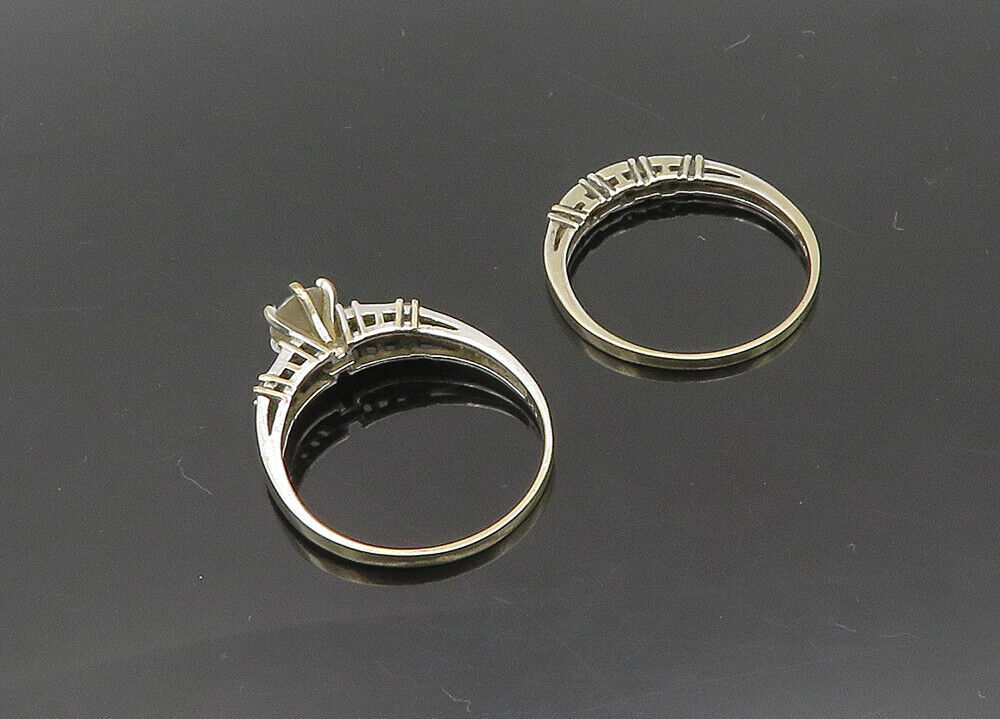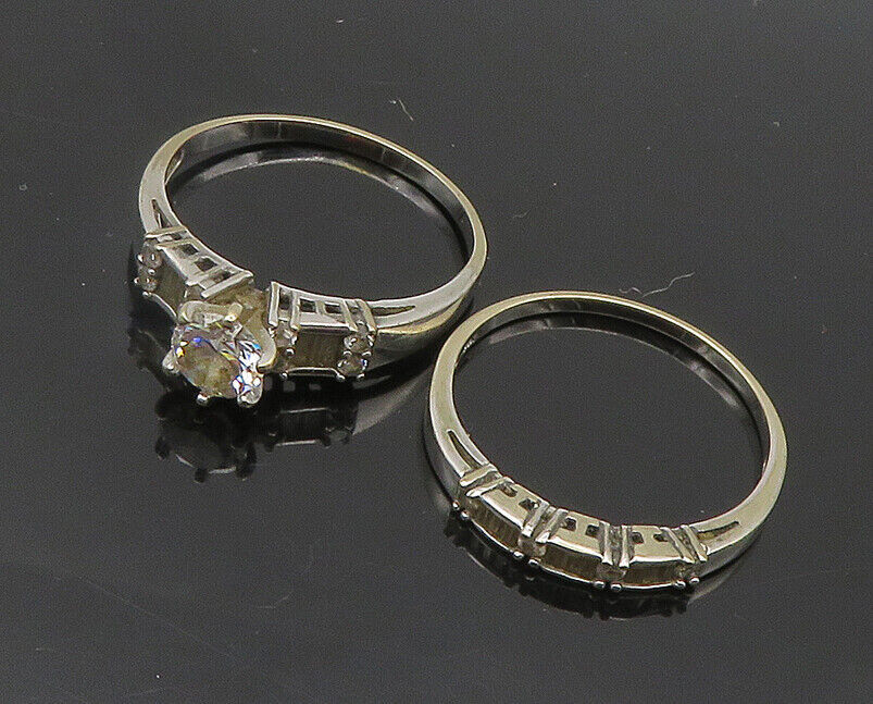 14K GOLD - Vintage Shiny 2 Pcs Set Cubic Zirconia Band Ring Sz 12.5 - GR004