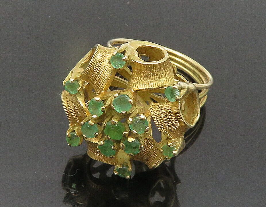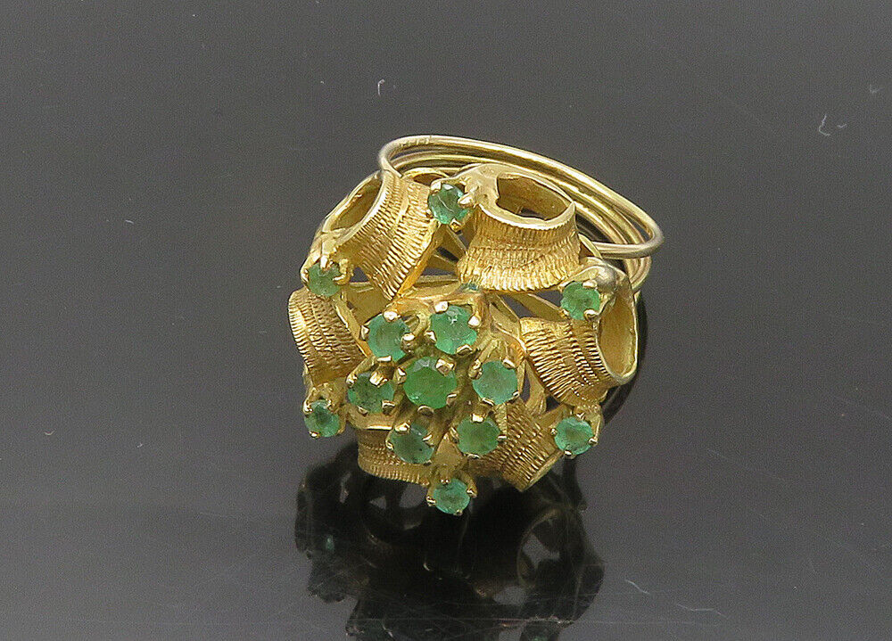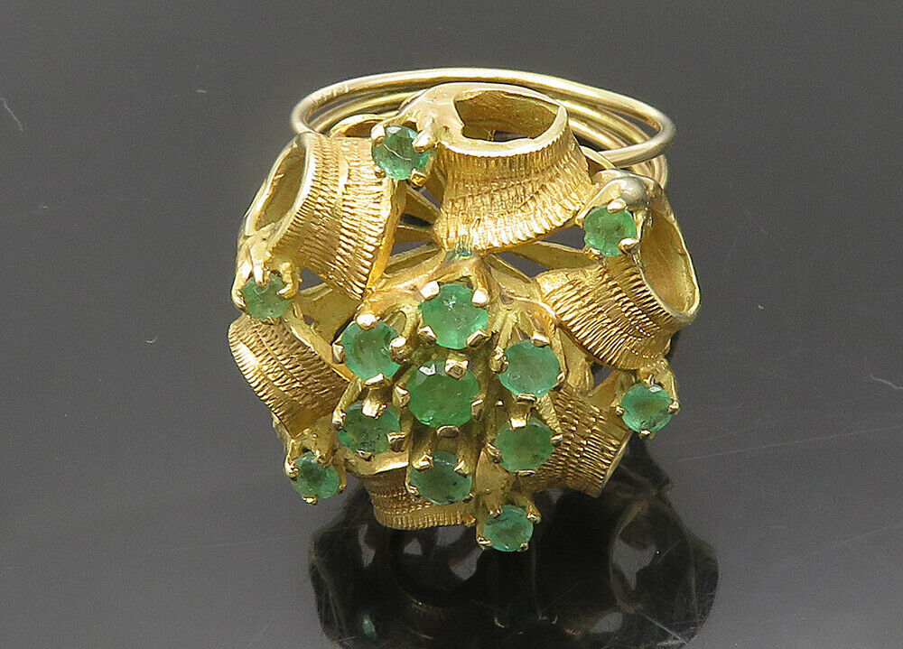 Authenticity Guarantee 18K GOLD - Vintage Emerald Victorian Ribbons Cocktail...