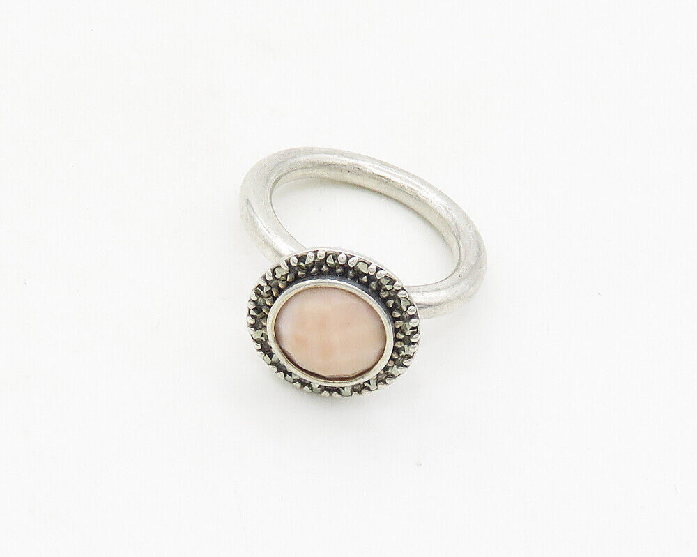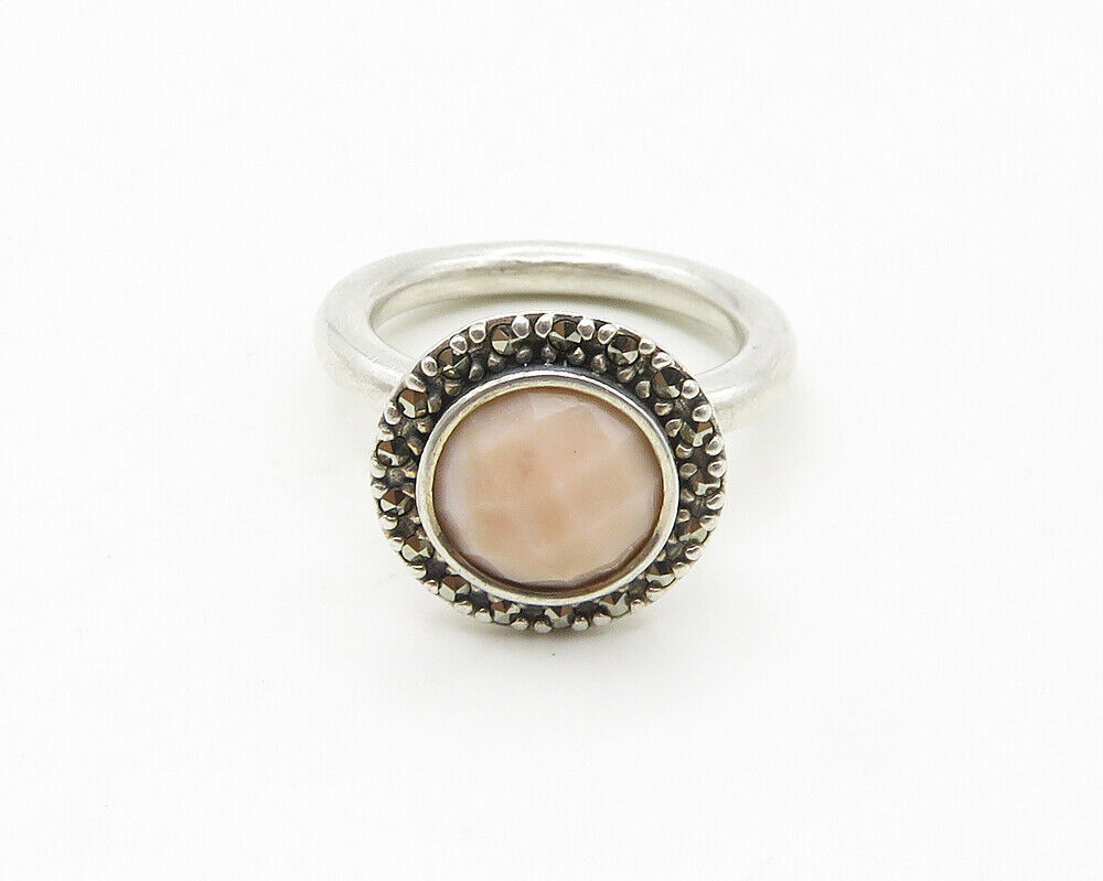 PANDORA 925 Silver - Faceted Stone & Marcasite Cocktail Ring Sz 6 - RG18065