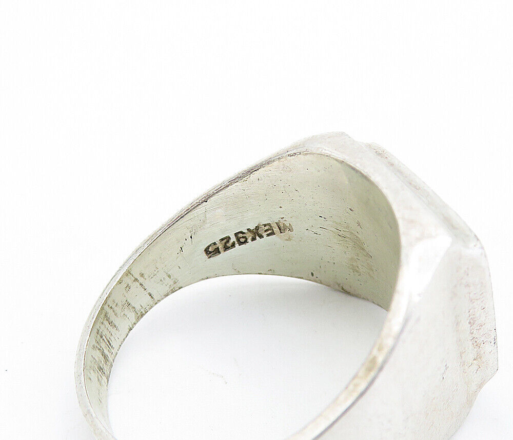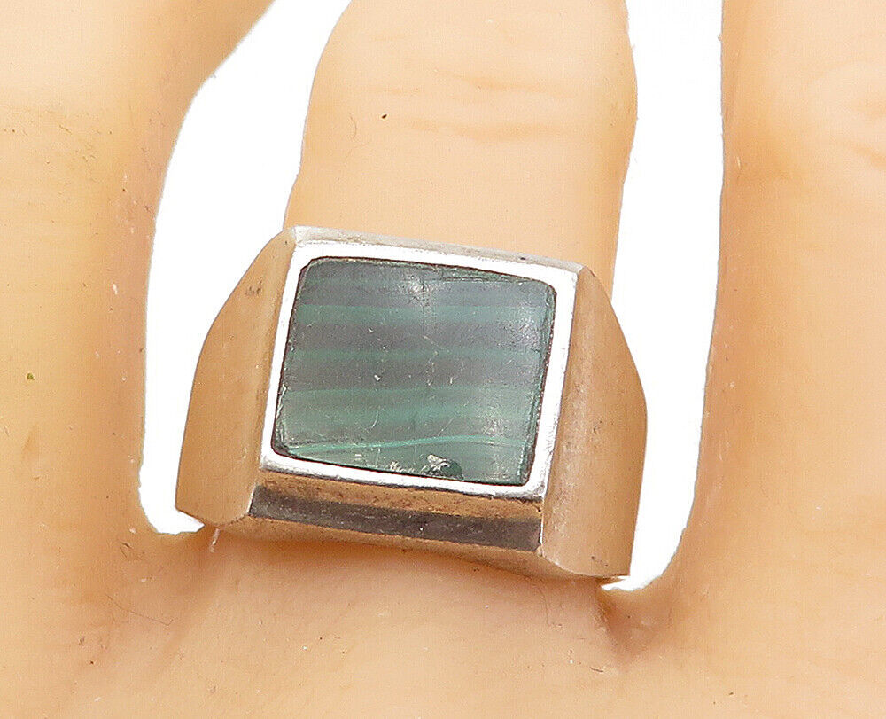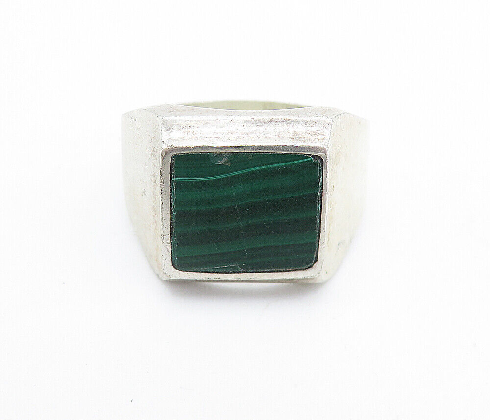 MEXICO 925 Silver - Vintage Malachite Square Large Band Ring Sz 12.5 - RG7392