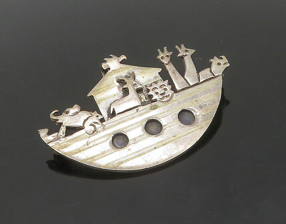 925 Sterling Silver - Vintage Noah's Arc Theme Religious Brooch Pin - BP6570