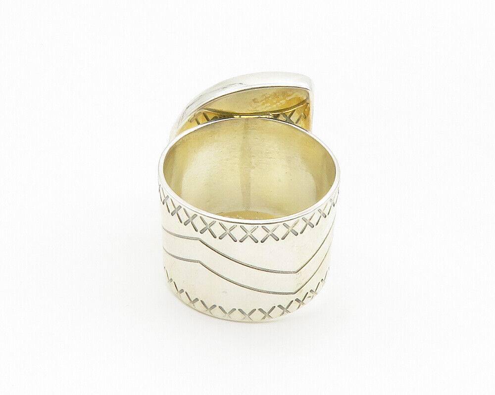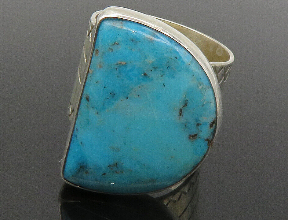 DTR JAY KING 925 Silver - Turquoise Etched Band Cocktail Ring Sz 7 - RG14141