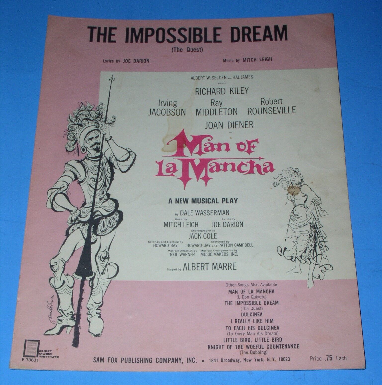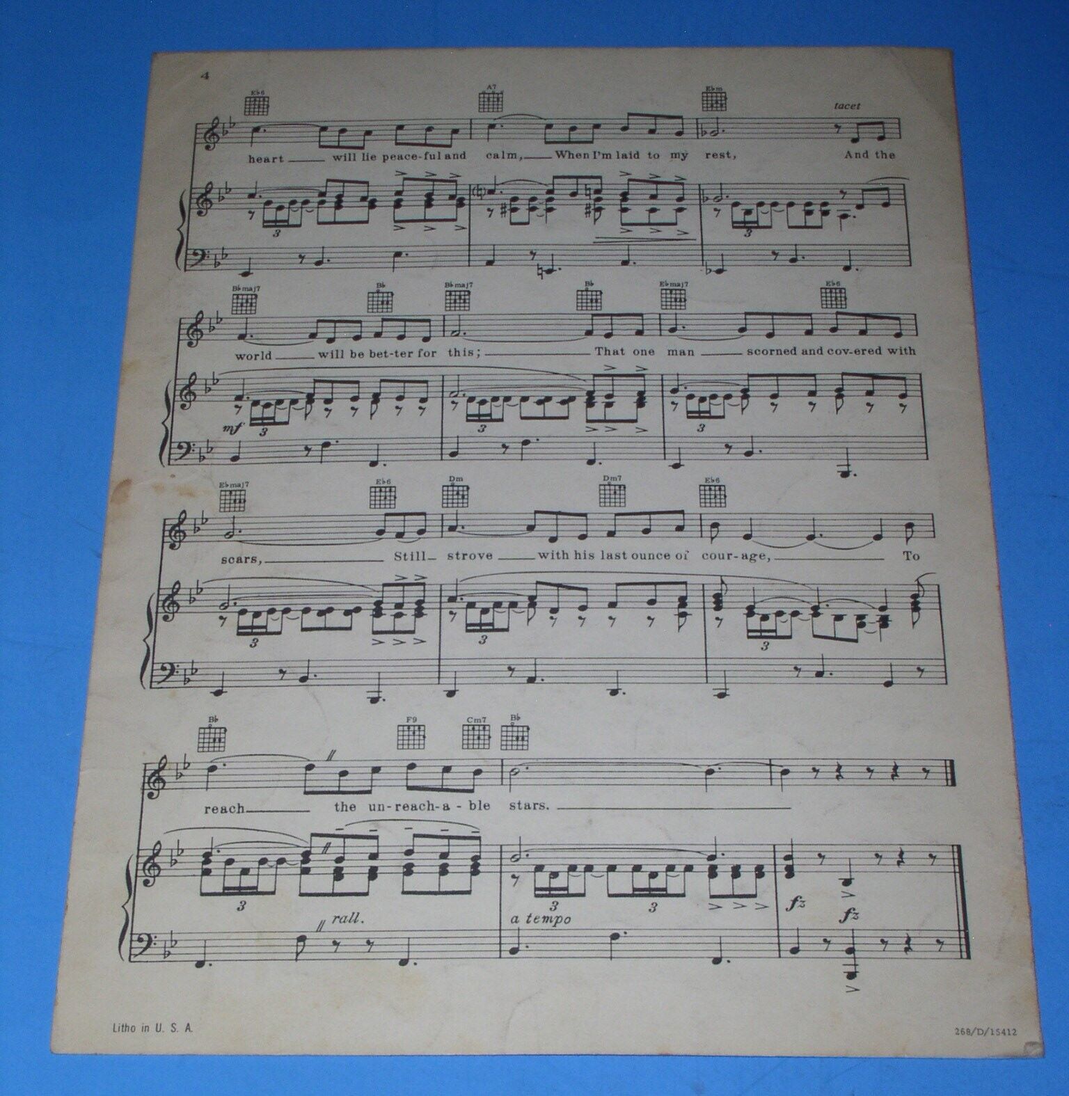 Man Of La Mancha Sheet Music The Impossible Dream Vintage 1965 Richard Kiley