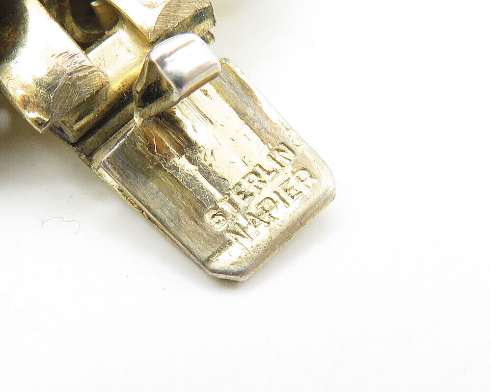 NAPIER 925 Silver - Vintage Rare Floral Leaf Motif Shiny Chain Bracelet - BT6792