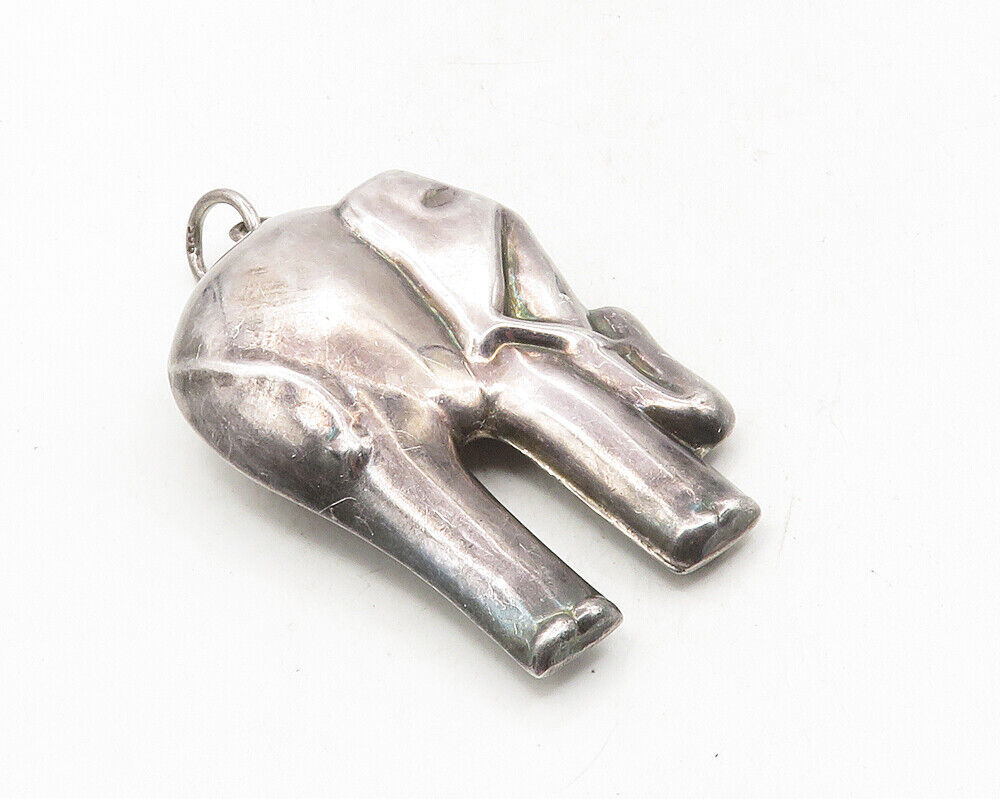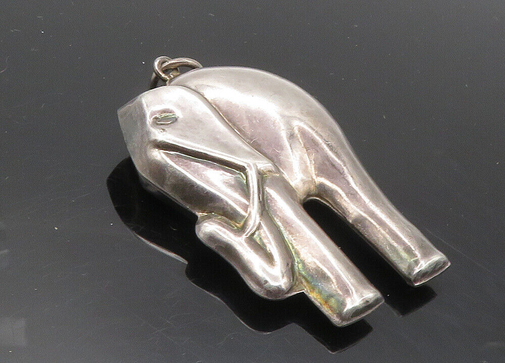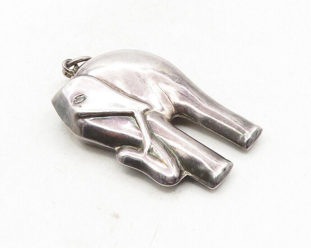 925 Sterling Silver - Vintage Dark Tone Hollow Elephant Motif Pendant - PT7790