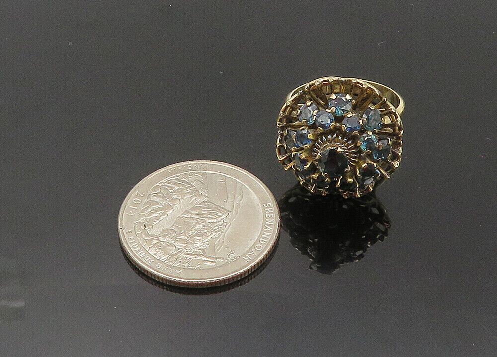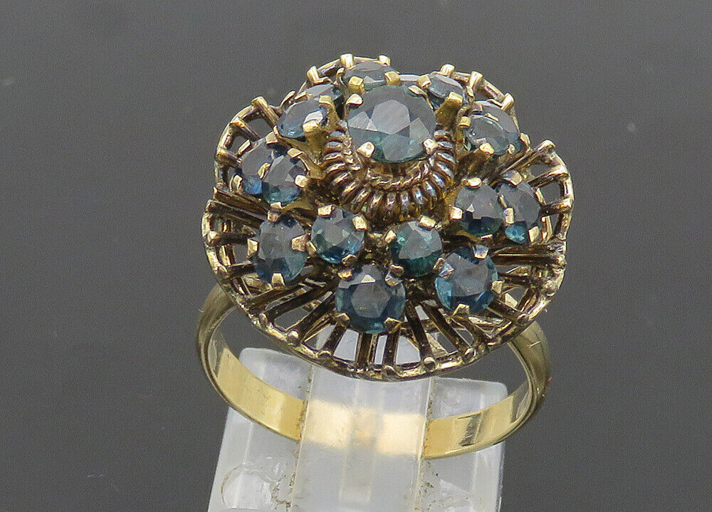 14K GOLD - Vintage Sapphire Floral Victorian Cocktail Ring Sz 7 - GR126