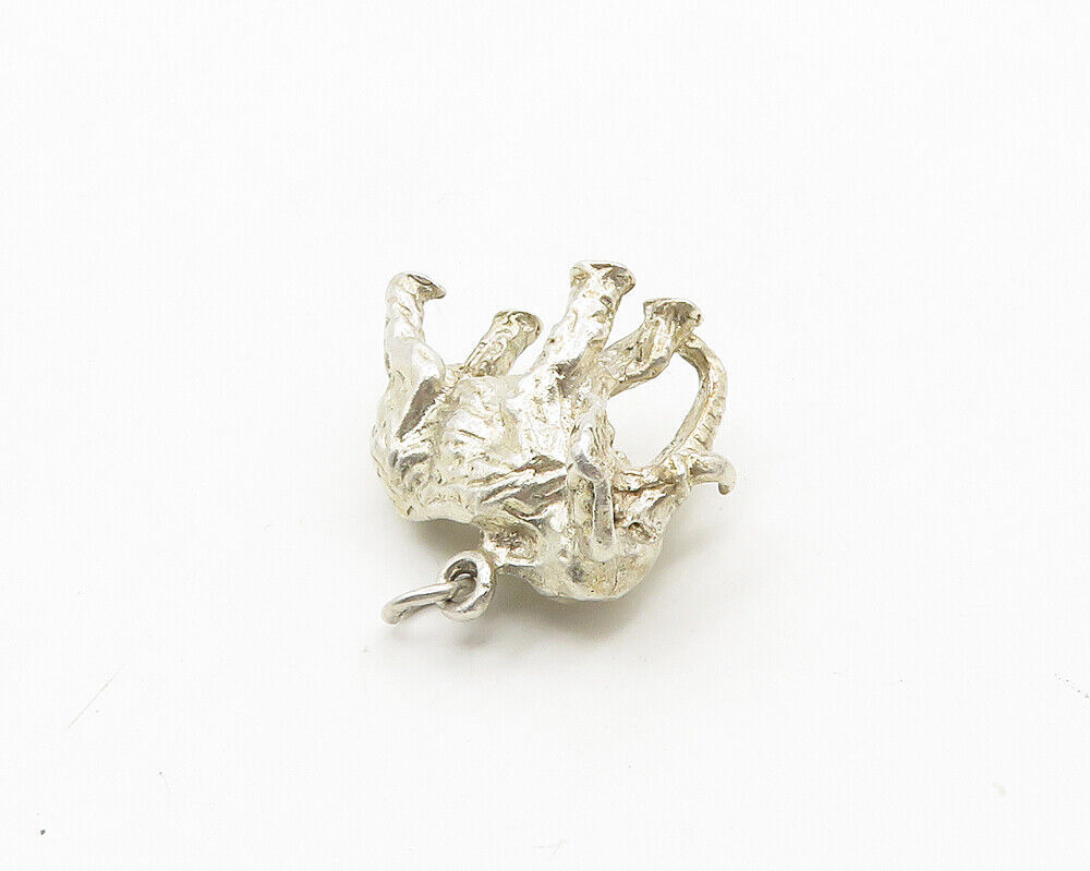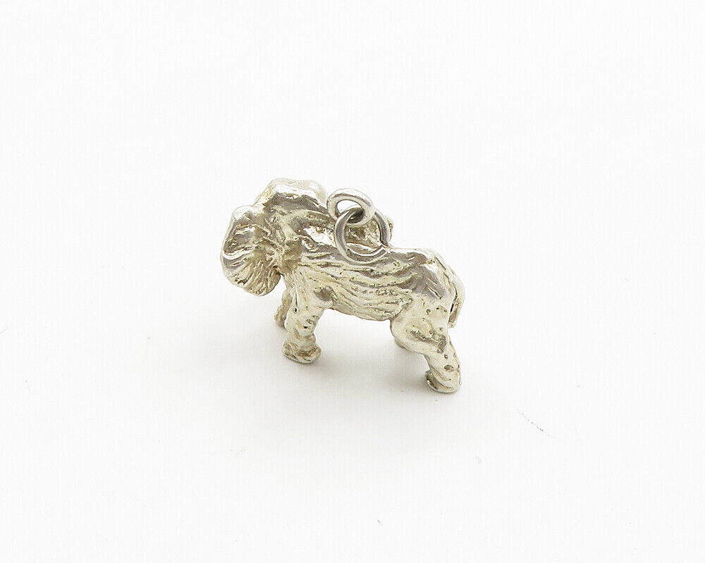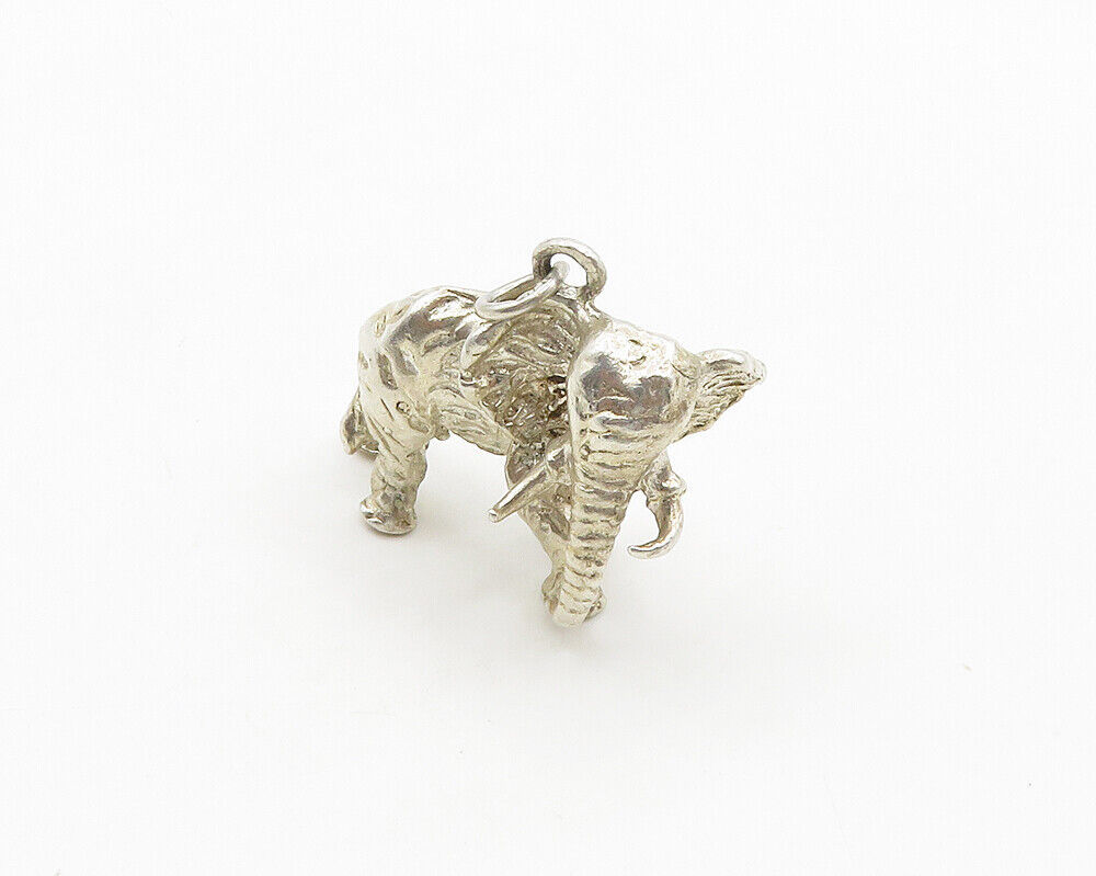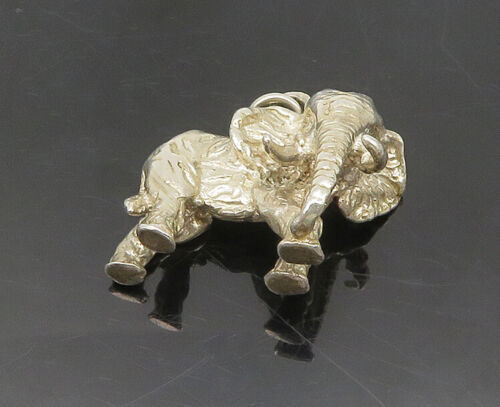 925 Sterling Silver - Vintage Shiny Sculpted Elephant Animal Pendant - PT15344