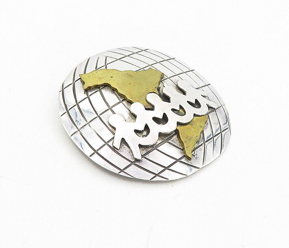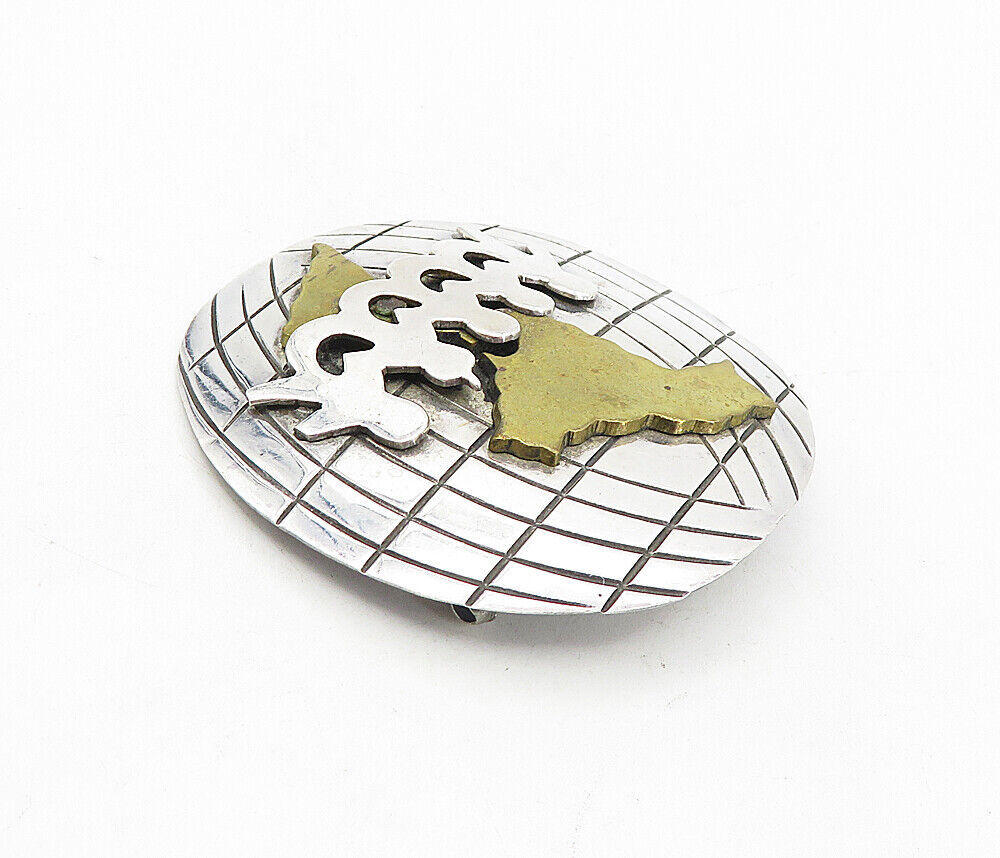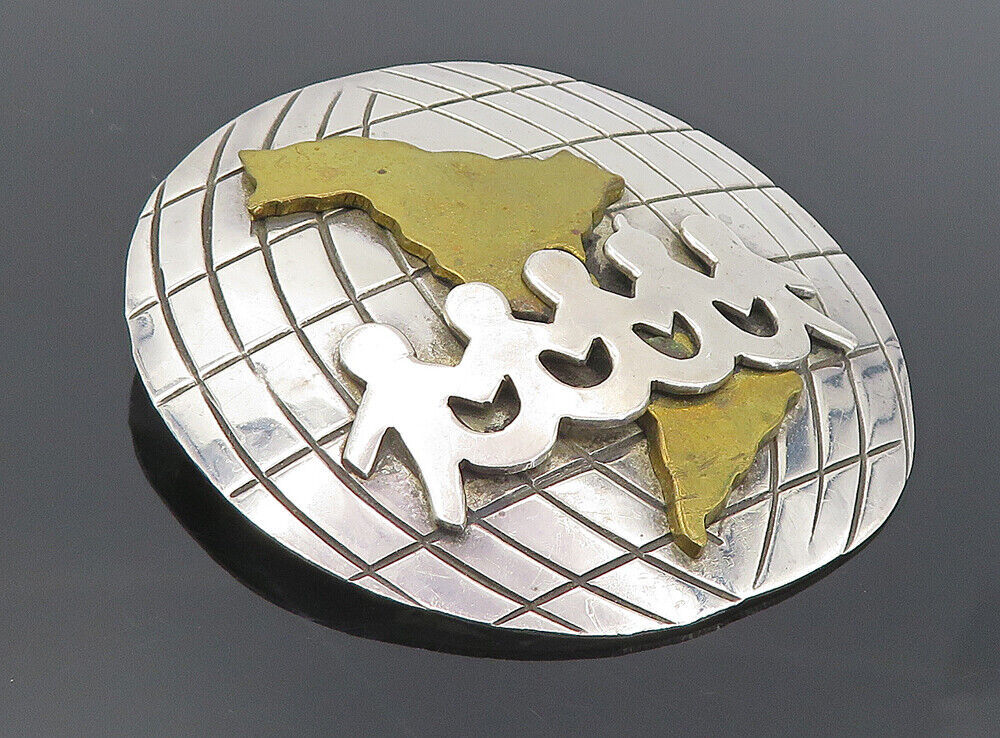 MEXICO 925 Sterling Silver - Vintage Two Tone World Unity Brooch Pin - BP3148