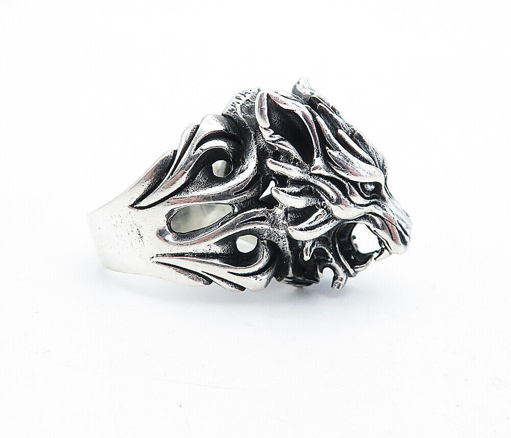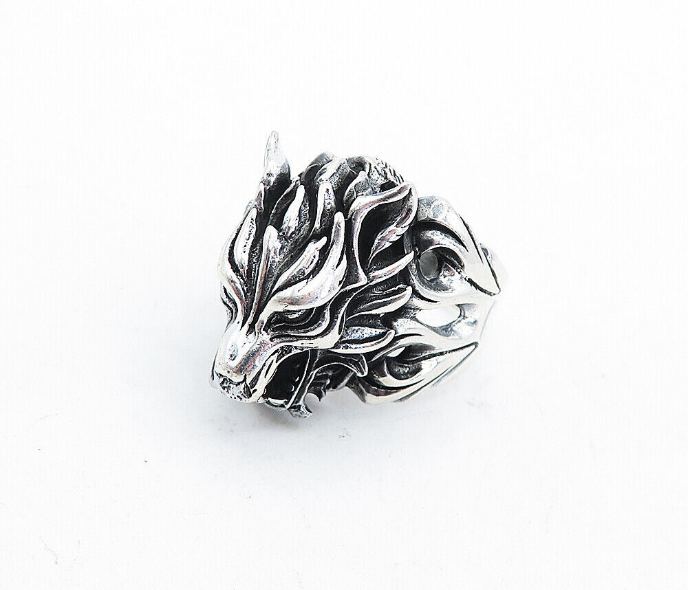 925 Sterling Silver - Vintage Sculpted Wolf's Head Band Ring Sz 12 - RG5363