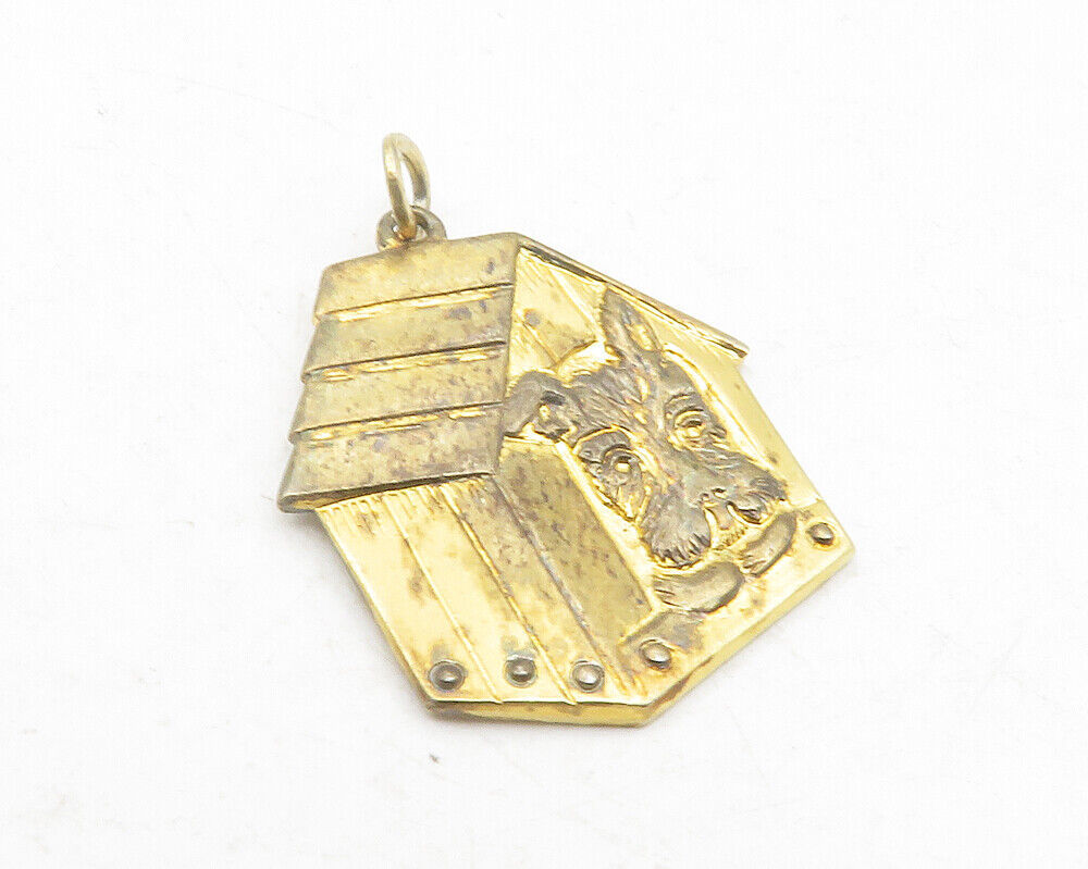 BEAU 925 Silver - Vintage Shiny Gold Plated Dog In Dog House Pendant - PT9596
