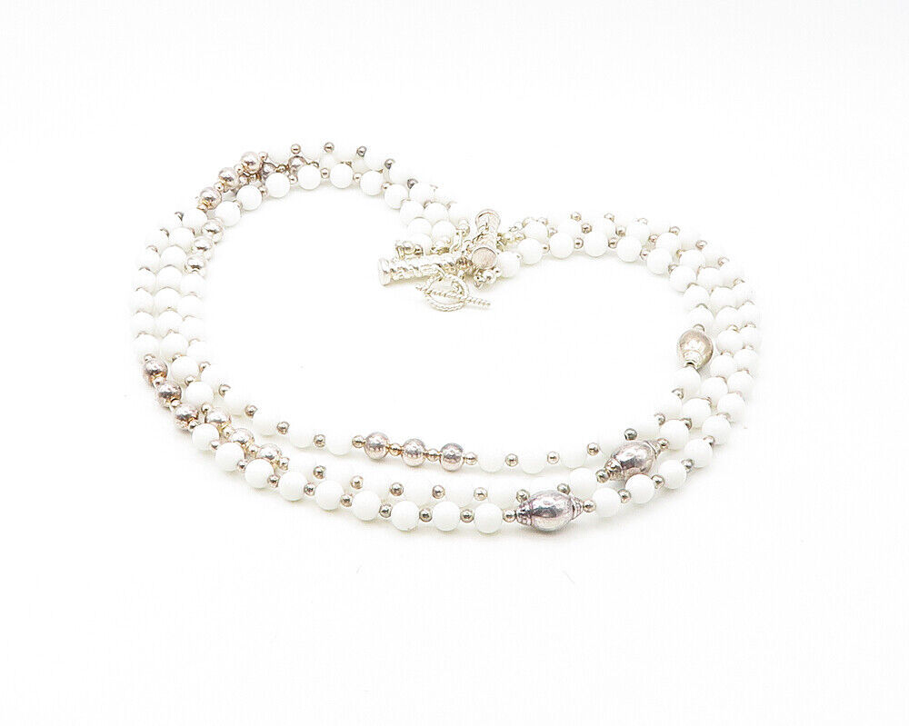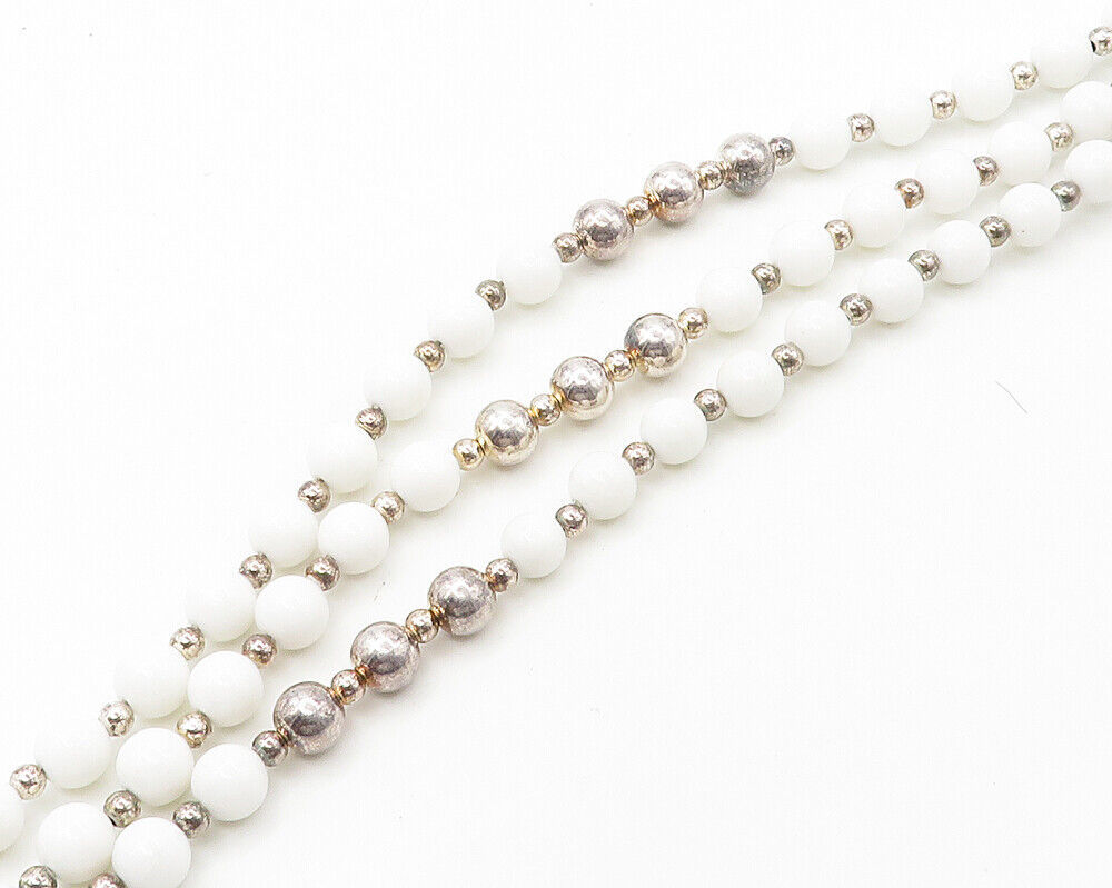 PAOLA VALENTINI 925 Silver - Vintage White Onyx Heavy Beaded Necklace - NE2994