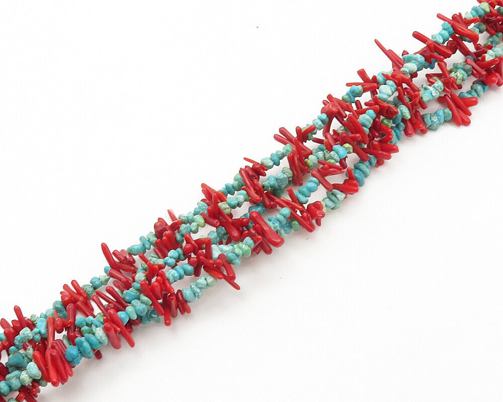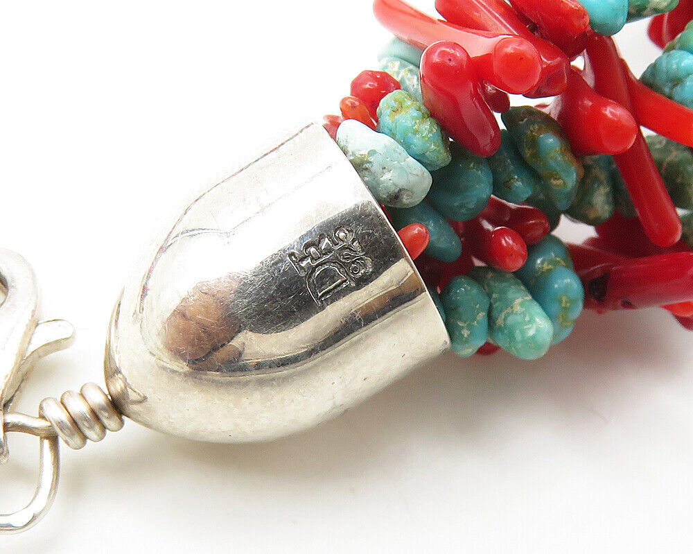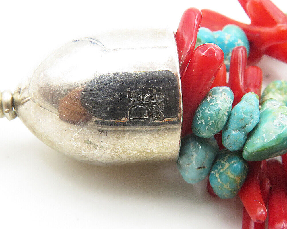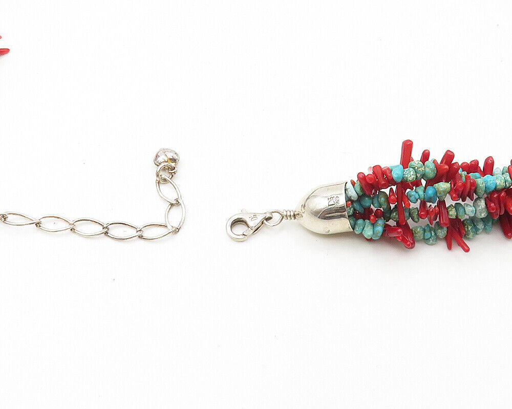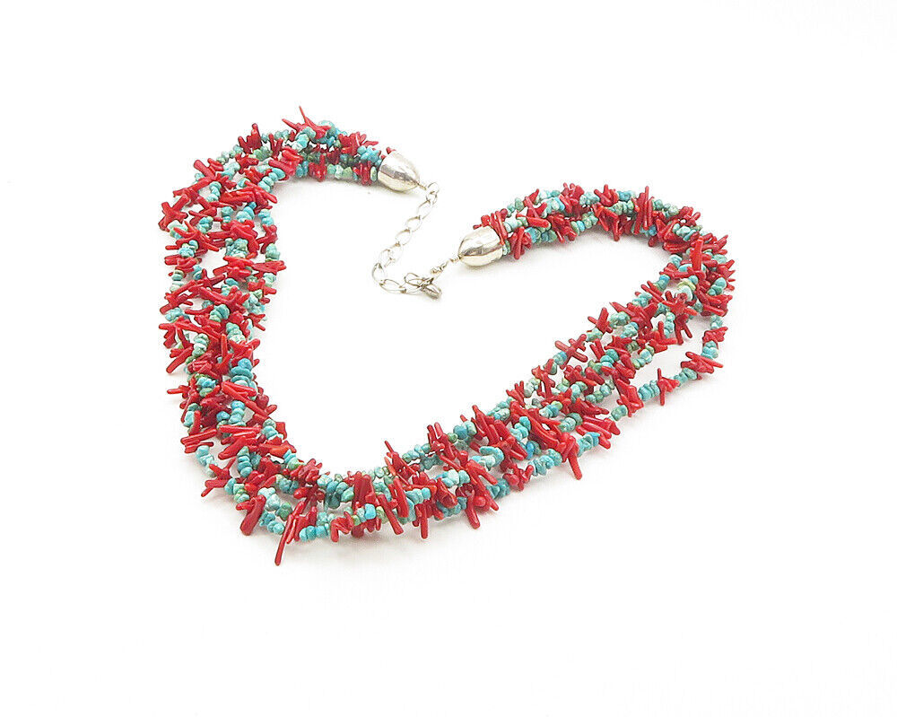 DTR JAY KING 925 Sterling Silver - Vintage Turquoise & Coral Necklace - NE2995