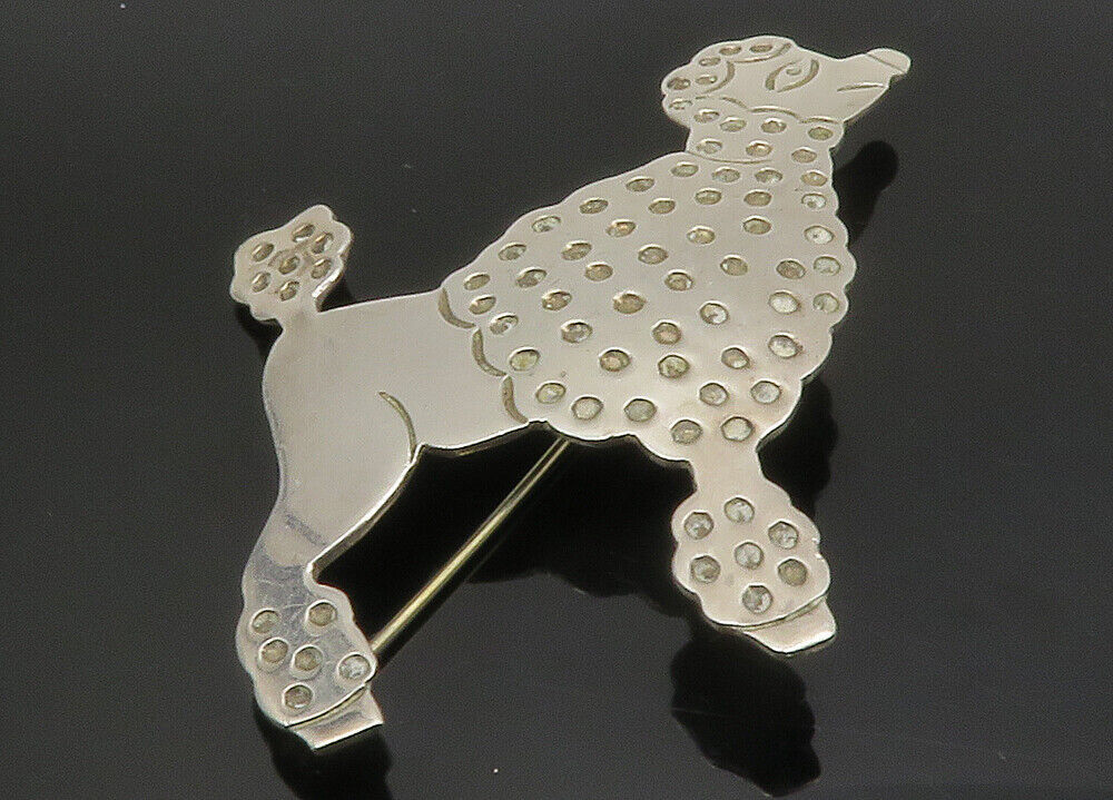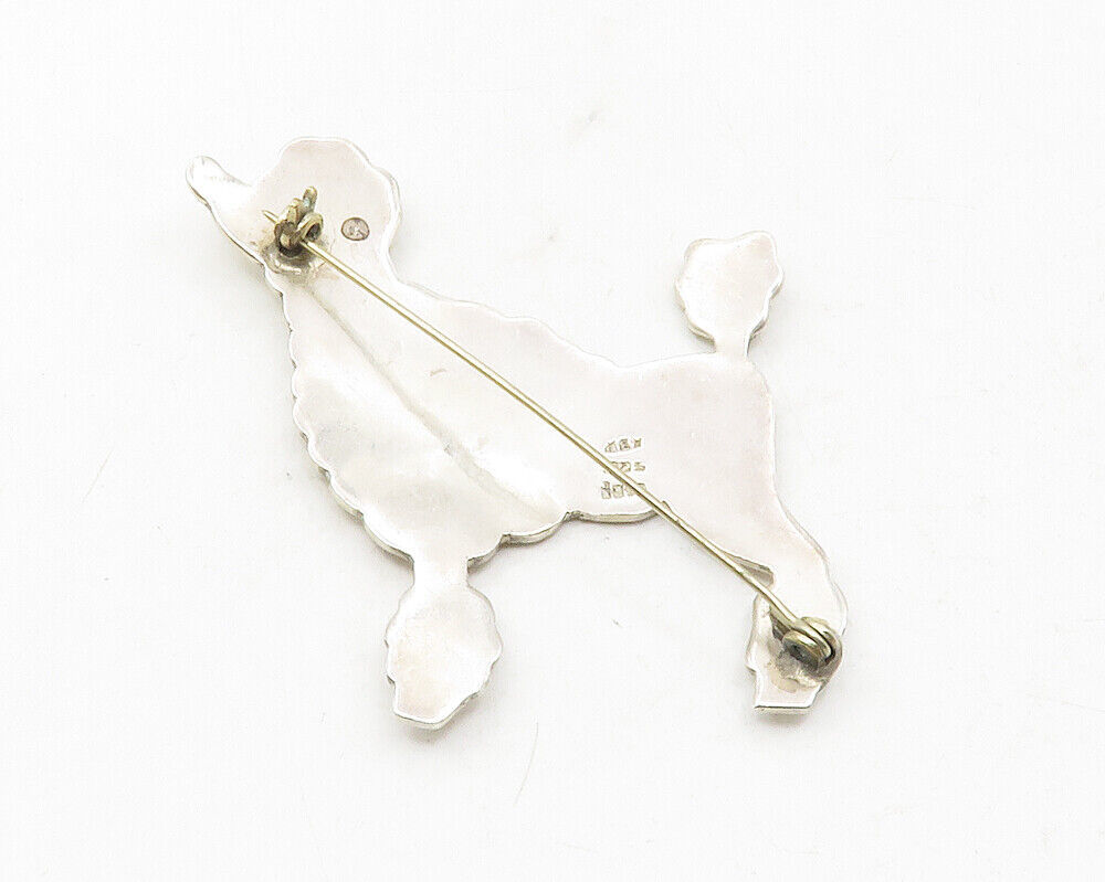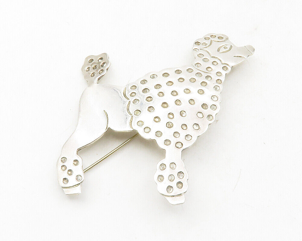 MEXICO 925 Sterling Silver - Vintage Shiny Dotted Poodle Brooch Pin - BP4504