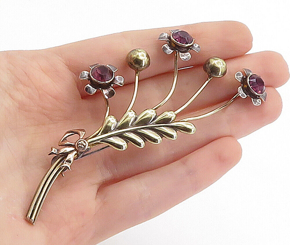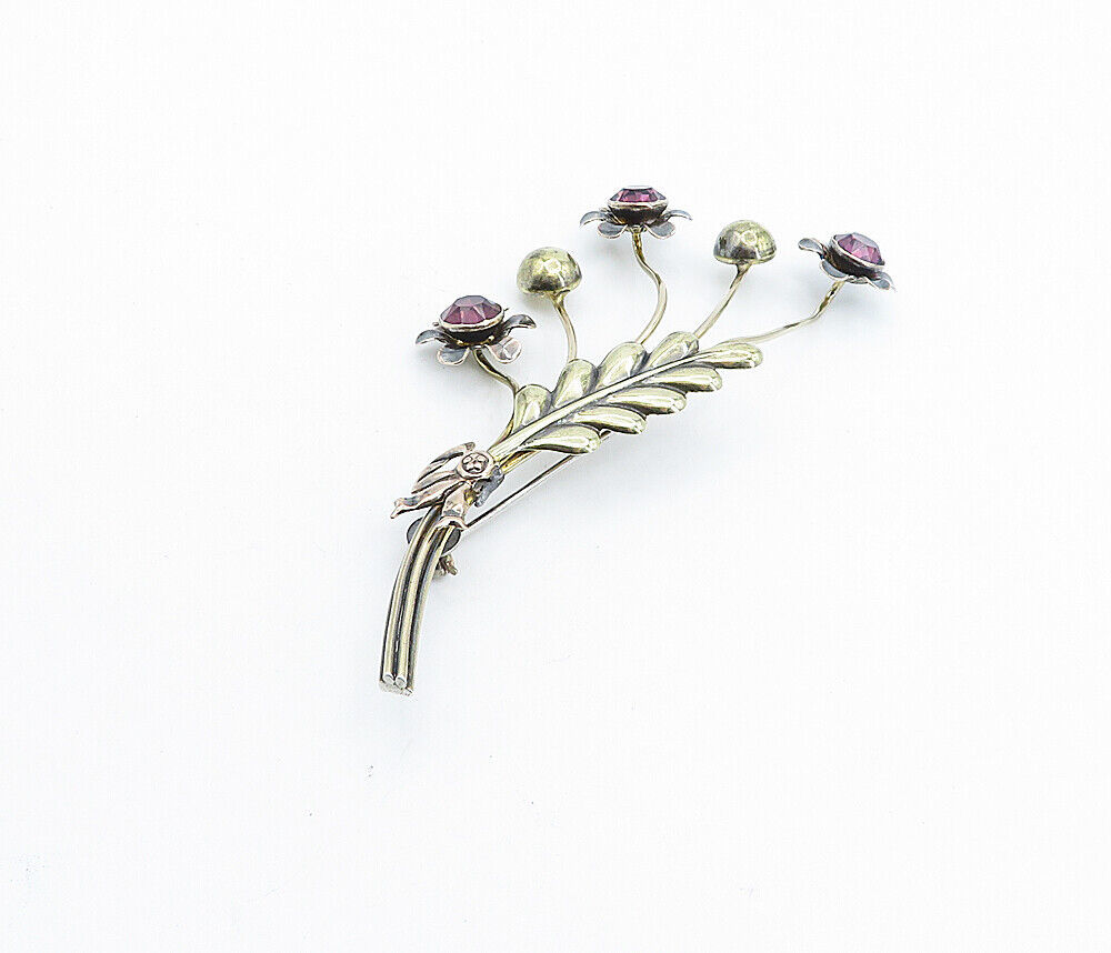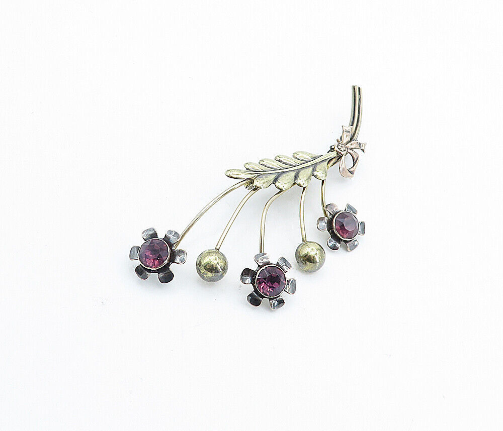 VAN DELL 925 Sterling Silver - Vintage Amethyst Flower Bunch Brooch Pin - BP2661