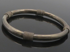 925 Sterling Silver - Vintage Dark Tone Rope Wrapped Bangle Bracelet - BT4708
