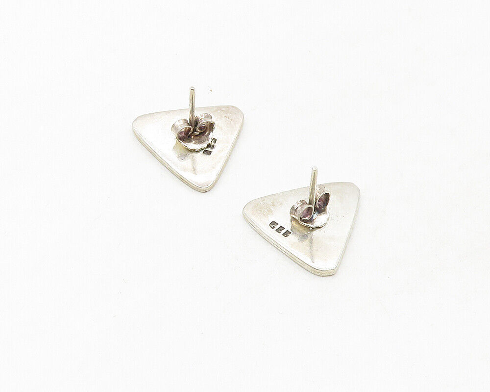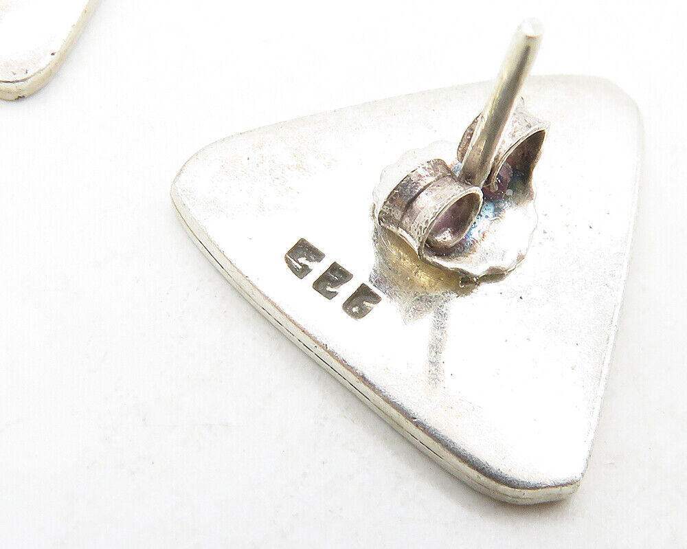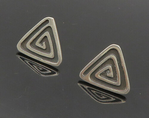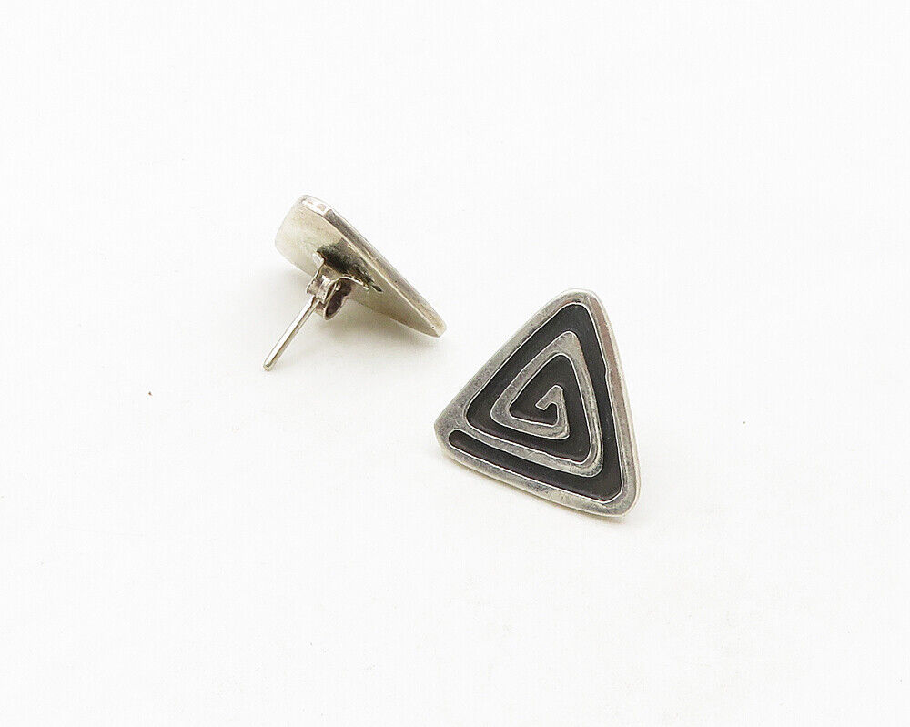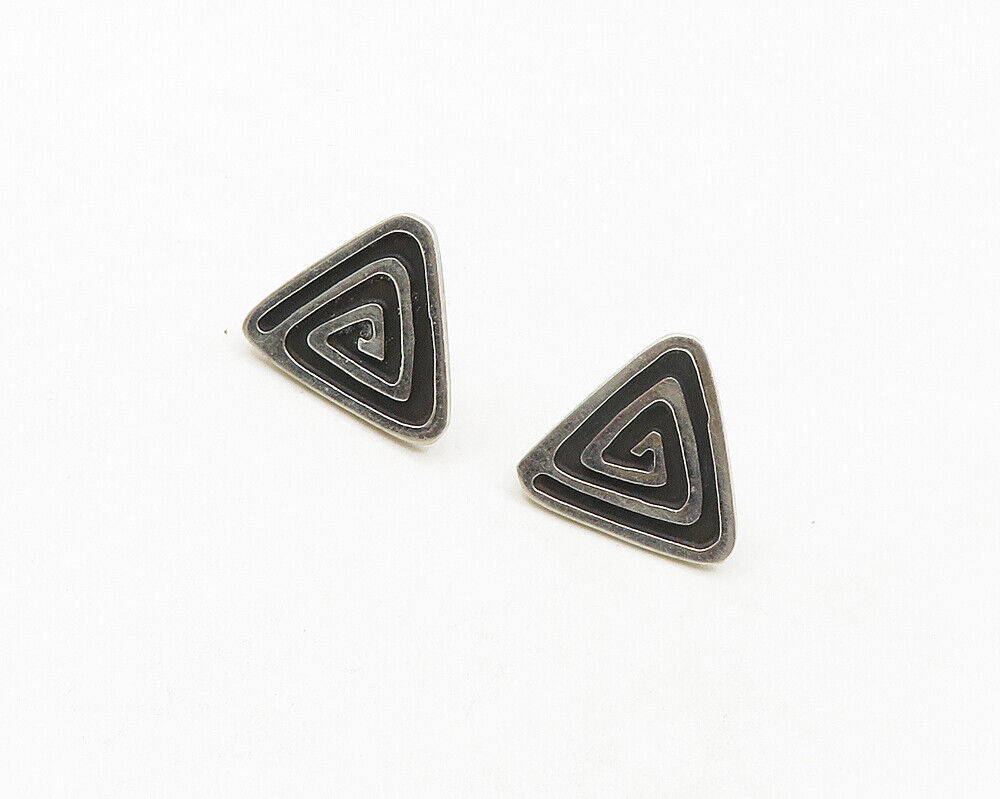 MEXICO 925 Silver - Vintage Oxidized Triangle Spiral Stud Earrings - EG9114