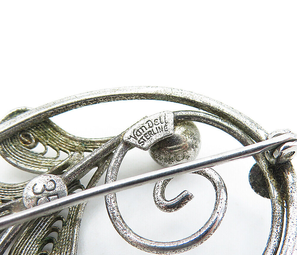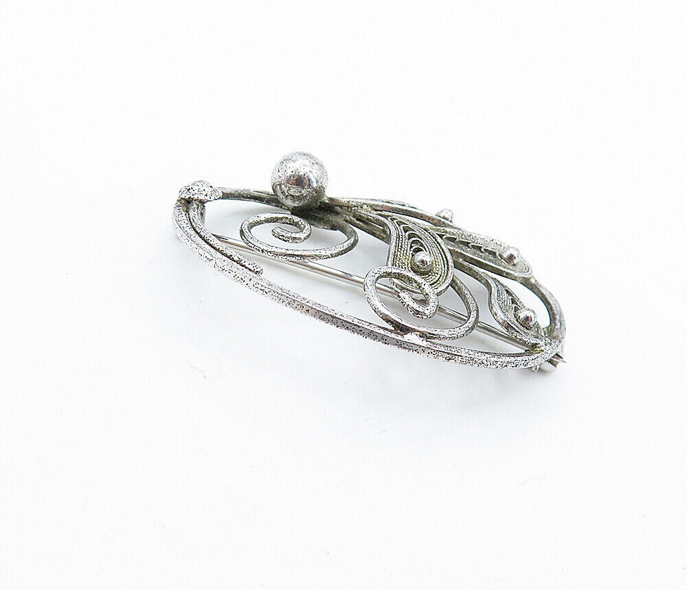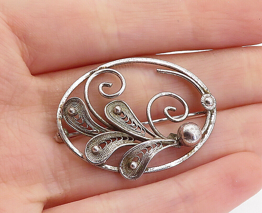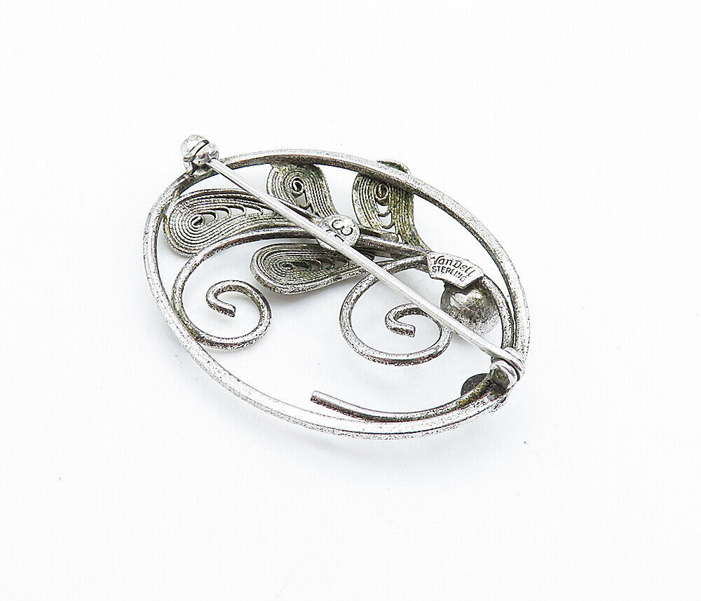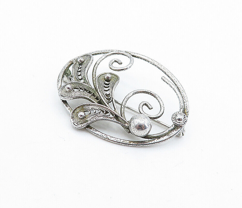 VAN DELL 925 Sterling Silver - Vintage Filigree Floral Swirl Brooch Pin - BP2526