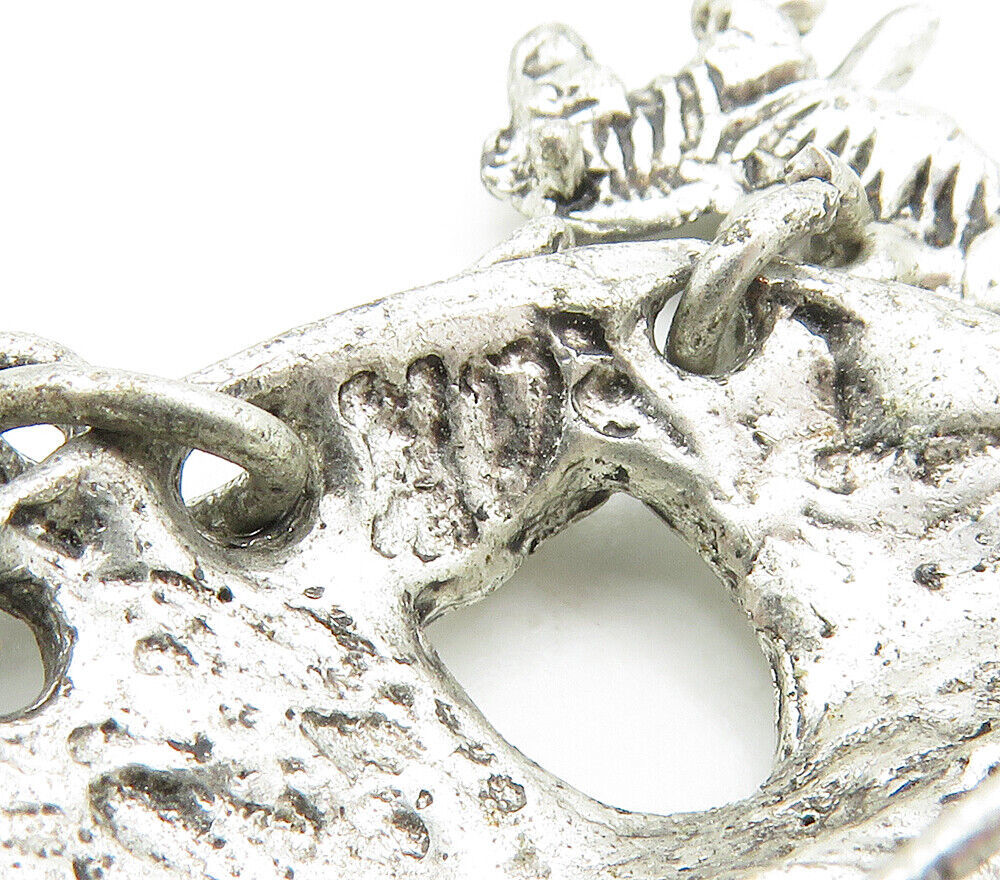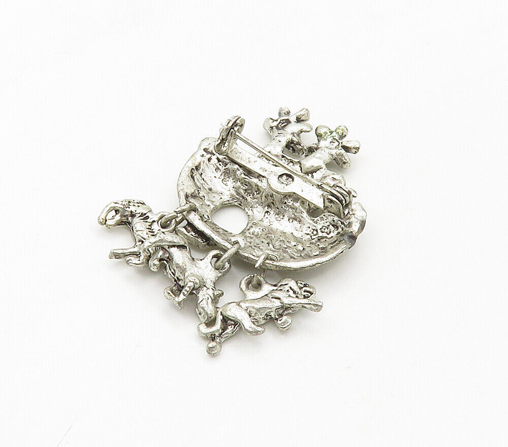 925 Sterling Silver - Vintage Noah's Arc Theme Dangling Brooch Pin - BP6258