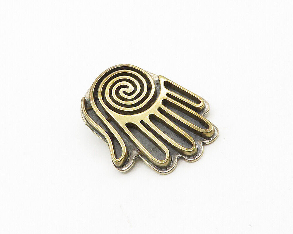 CAROLYN POLLACK RELIOS 925 Silver - Vintage Shiny Spiral Hand Brooch Pin- BP7347