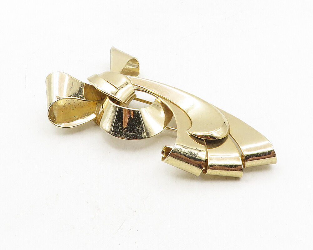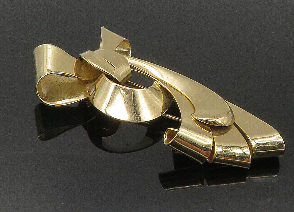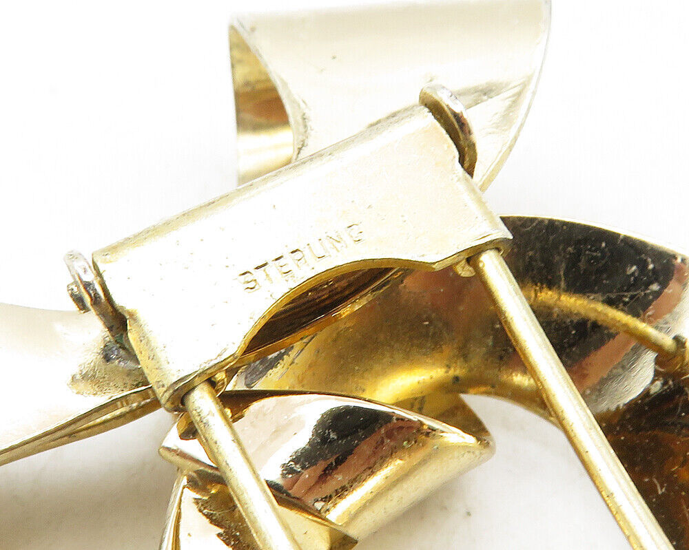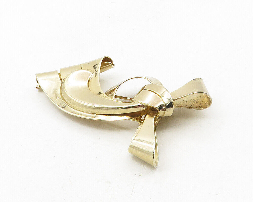 NAPIER 925 Sterling Silver - Vintage Shiny Smooth Ribbon Bow Fur Clip - TR1671