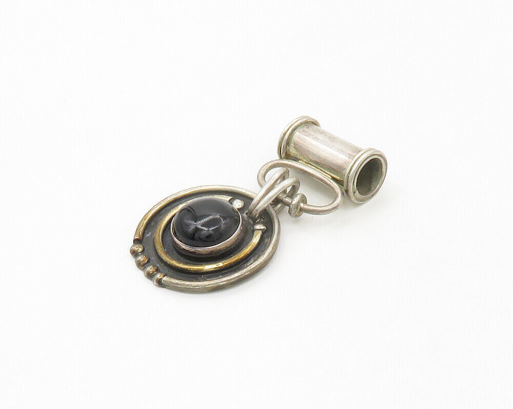 ESPERANZA 925 Sterling Silver - Vintage Black Onyx Modernist Pendant - PT13719