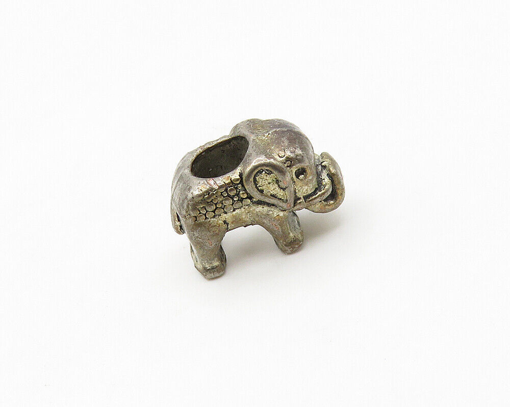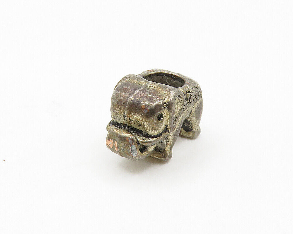 925 Sterling Silver - Vintage Petite Dark Tone Elephant Bead Pendant - PT13834