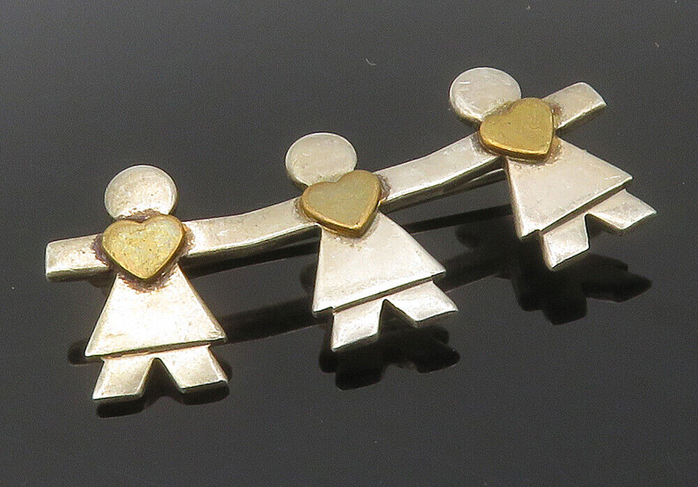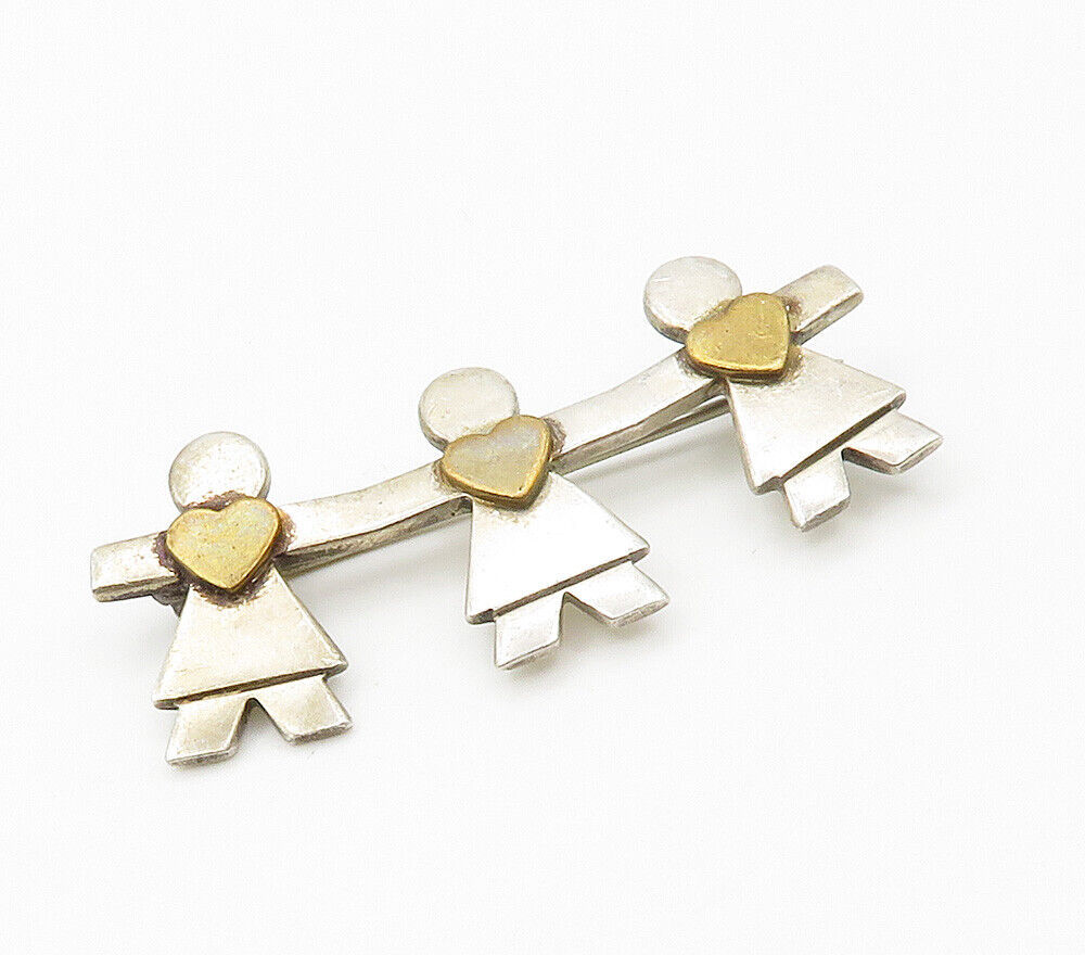 925 Sterling Silver - Vintage Two Tone Love Heart Unity Brooch Pin - BP6109
