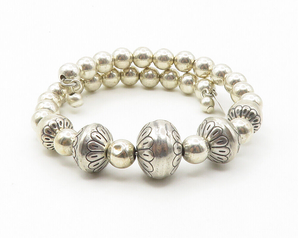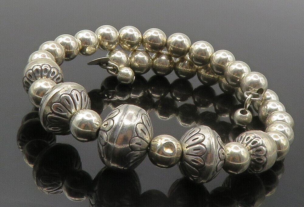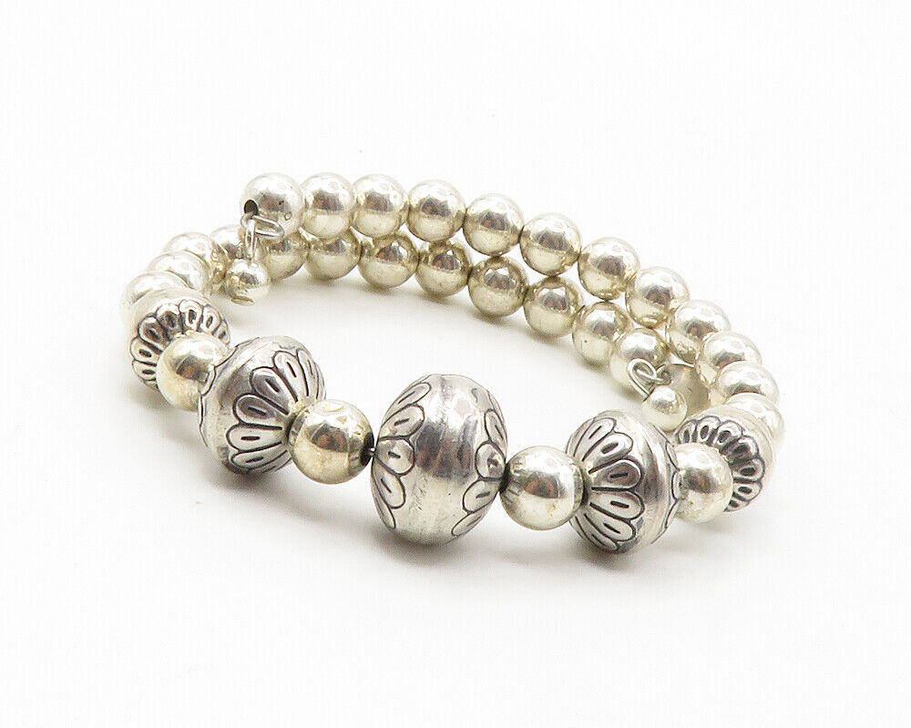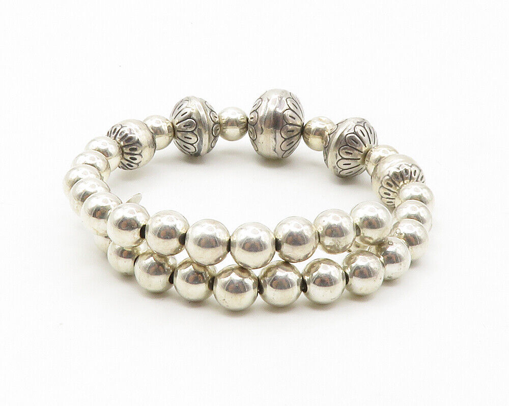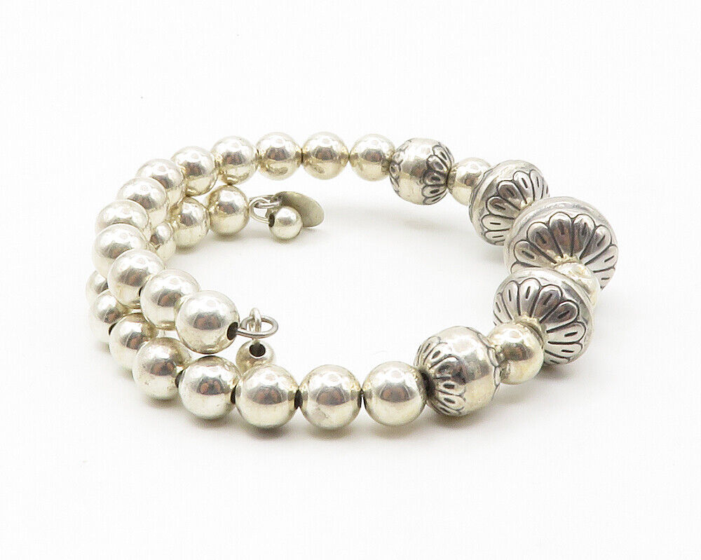 CAROLYN POLLACK RELIOS 925 Silver - Vintage Shiny Floral Beaded Bracelet- BT5491