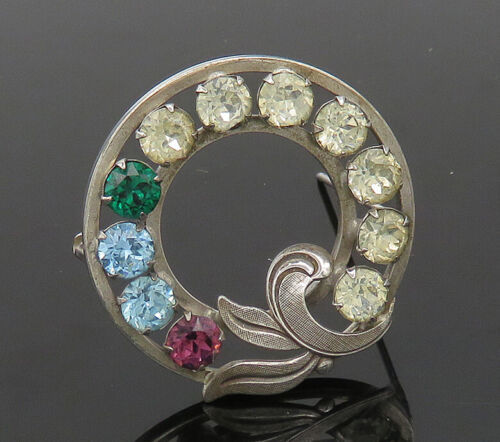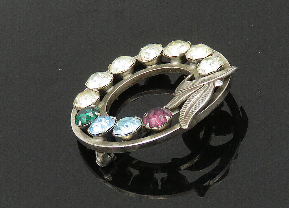 VAN DELL 925 Silver - Vintage Multi-Color Topaz Wreath Brooch Pin - BP8159
