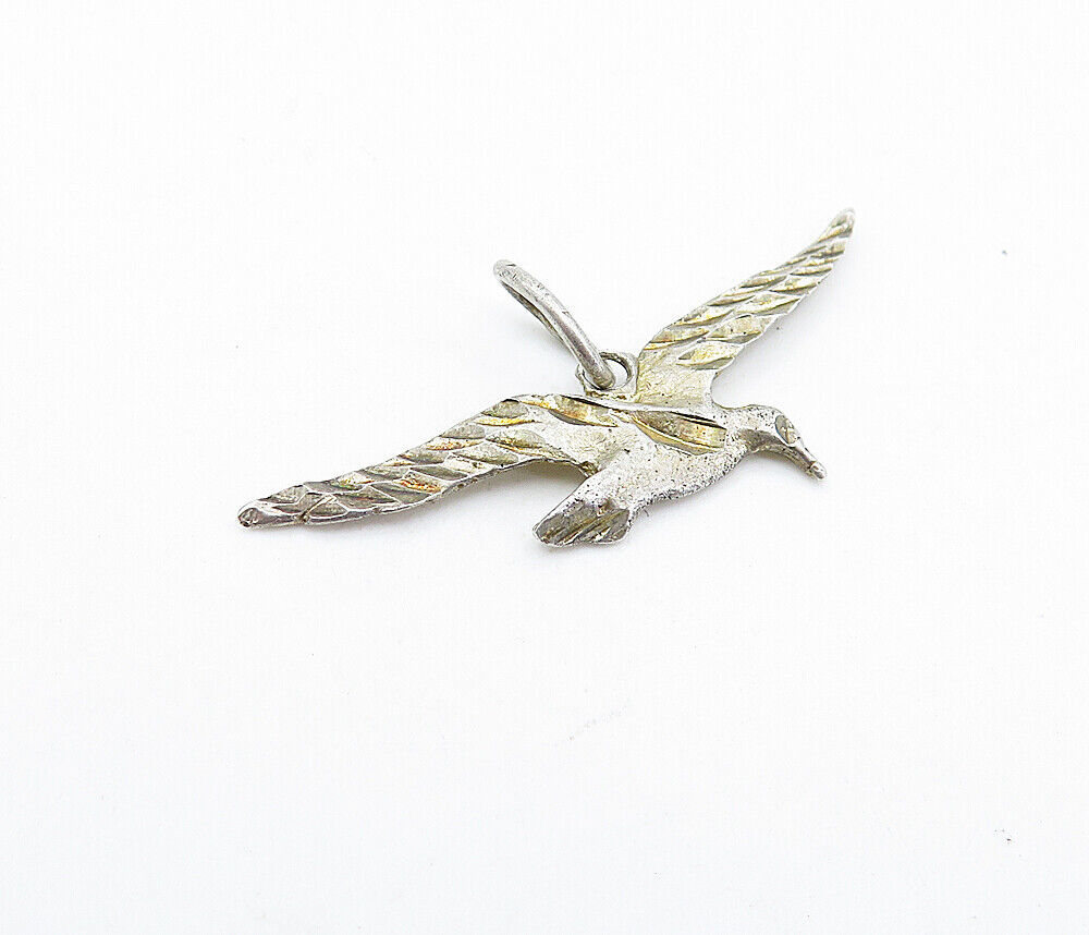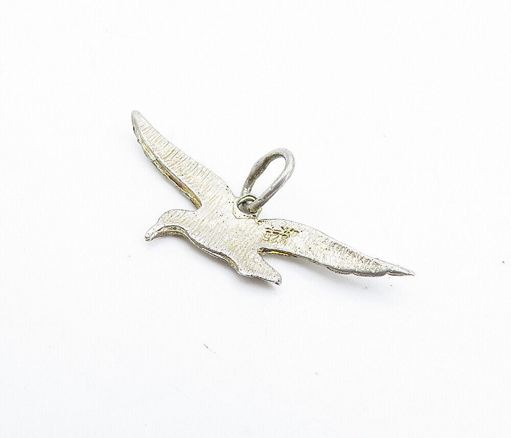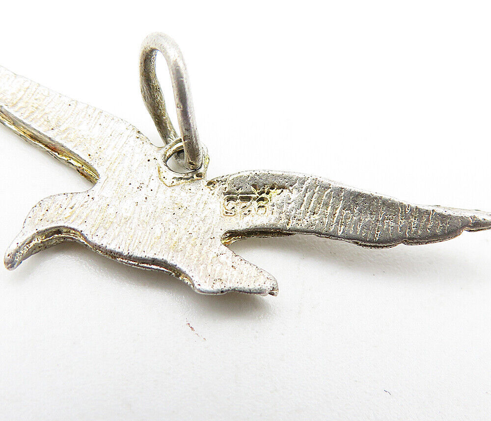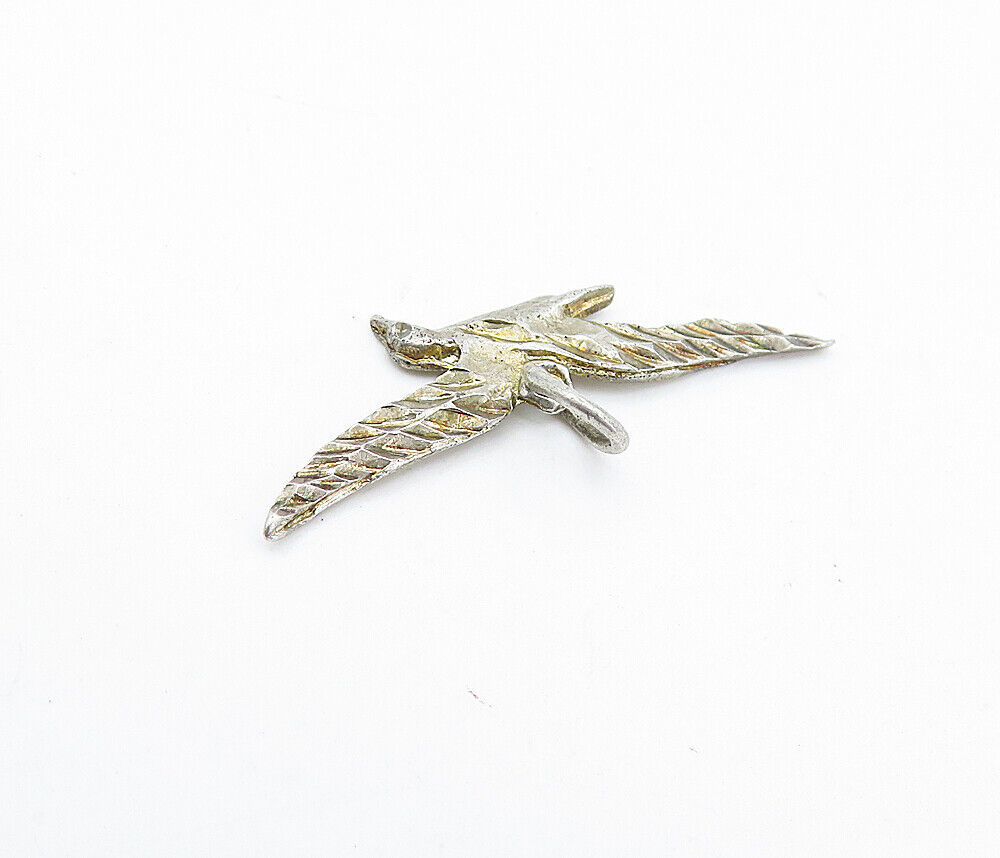 925 Sterling Silver - Vintage Petite Etched Flying Bird Motif Pendant - PT2972