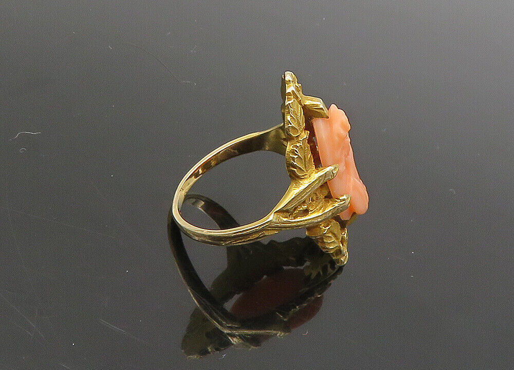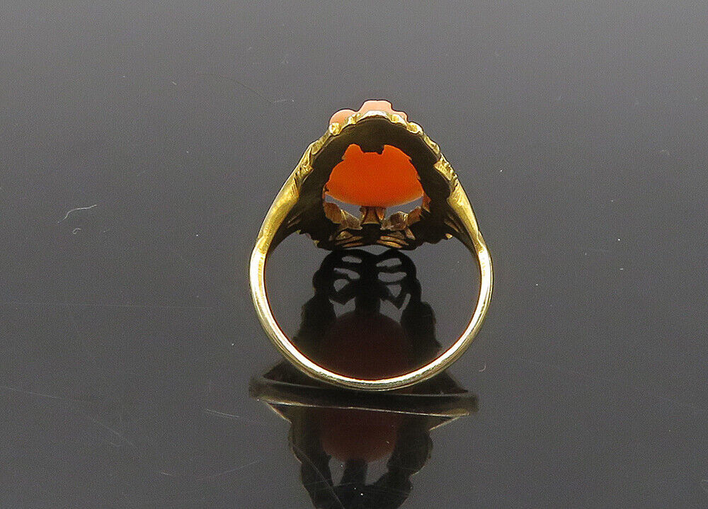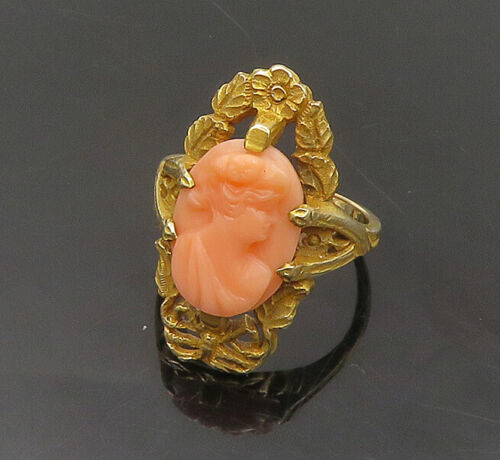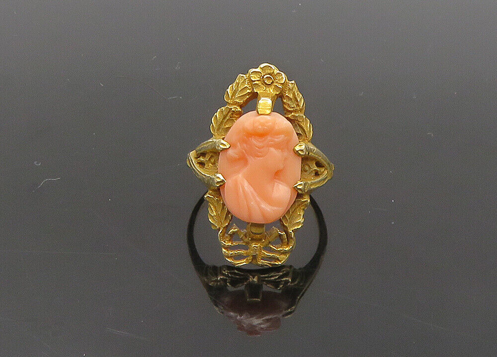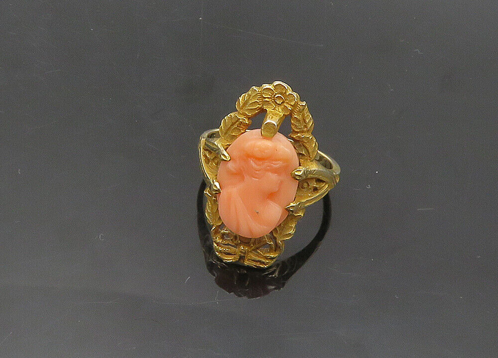 Authenticity Guarantee 10K GOLD - Vintage Carved Coral Woman Victorian Cockt...