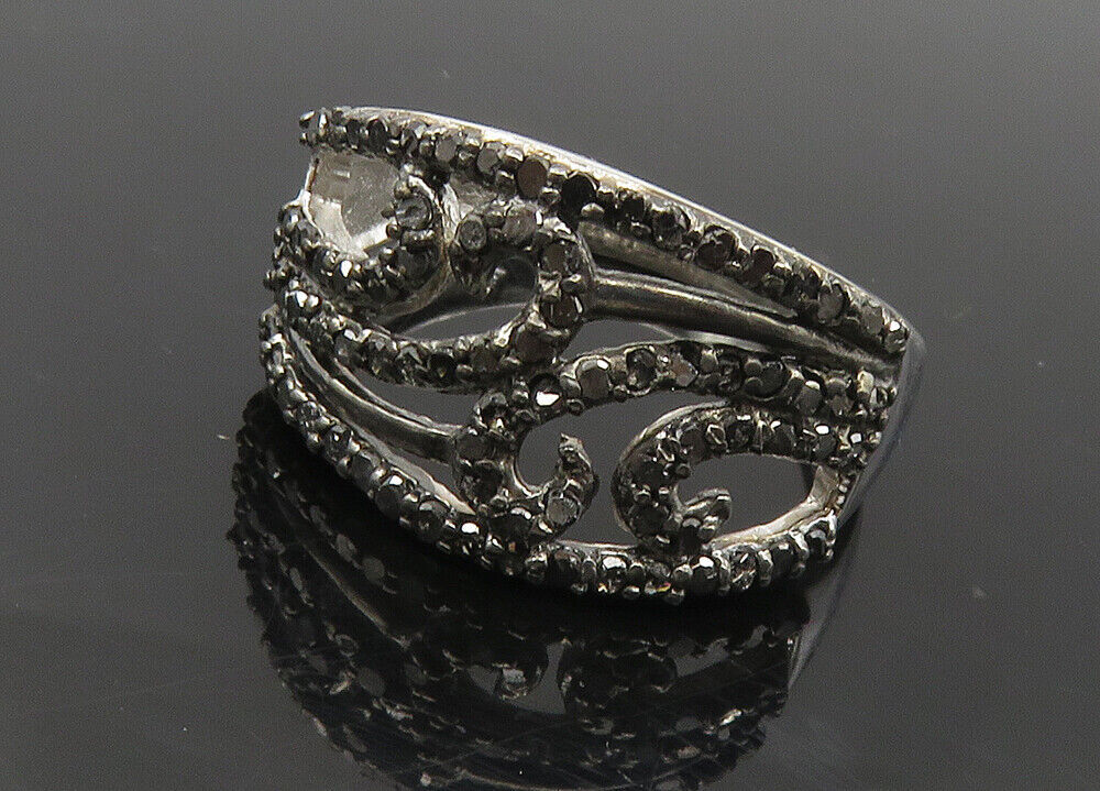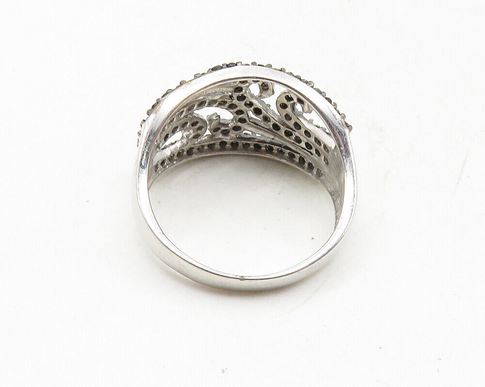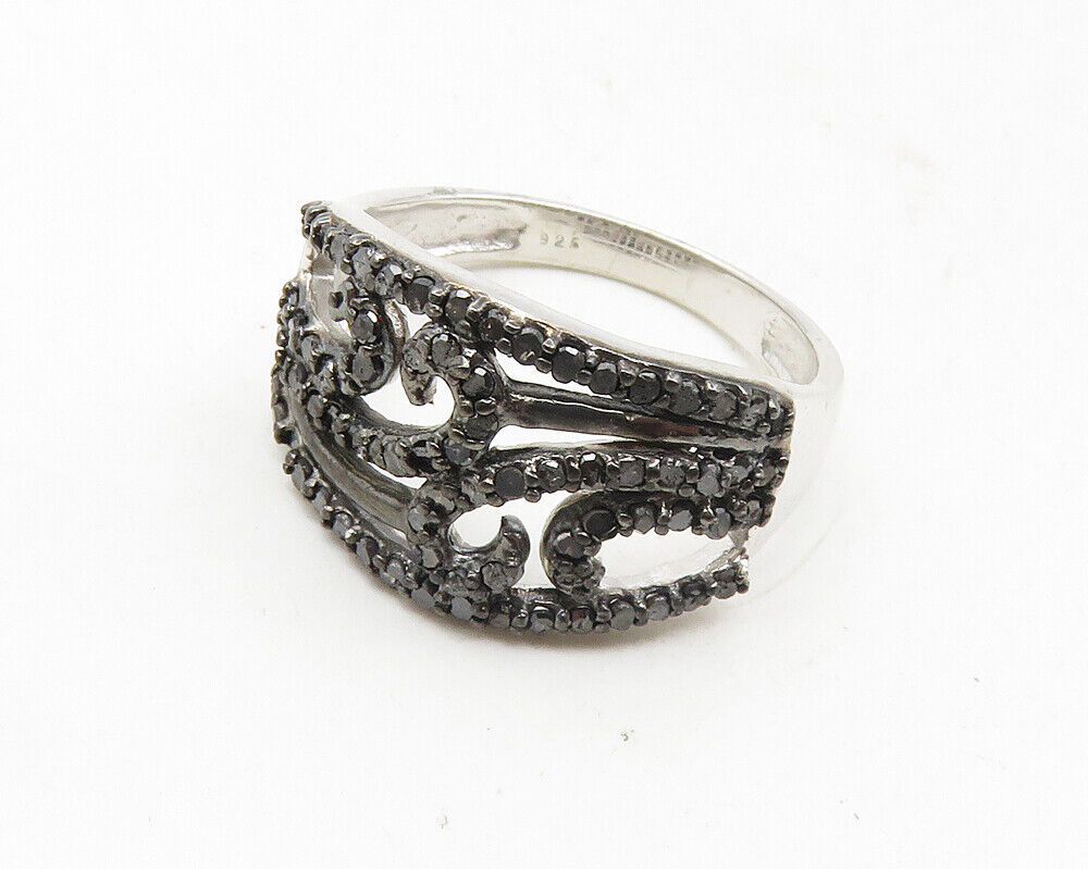 925 Sterling Silver - Vintage Genuine Black Diamonds Band Ring Sz 7.5 - RG9972