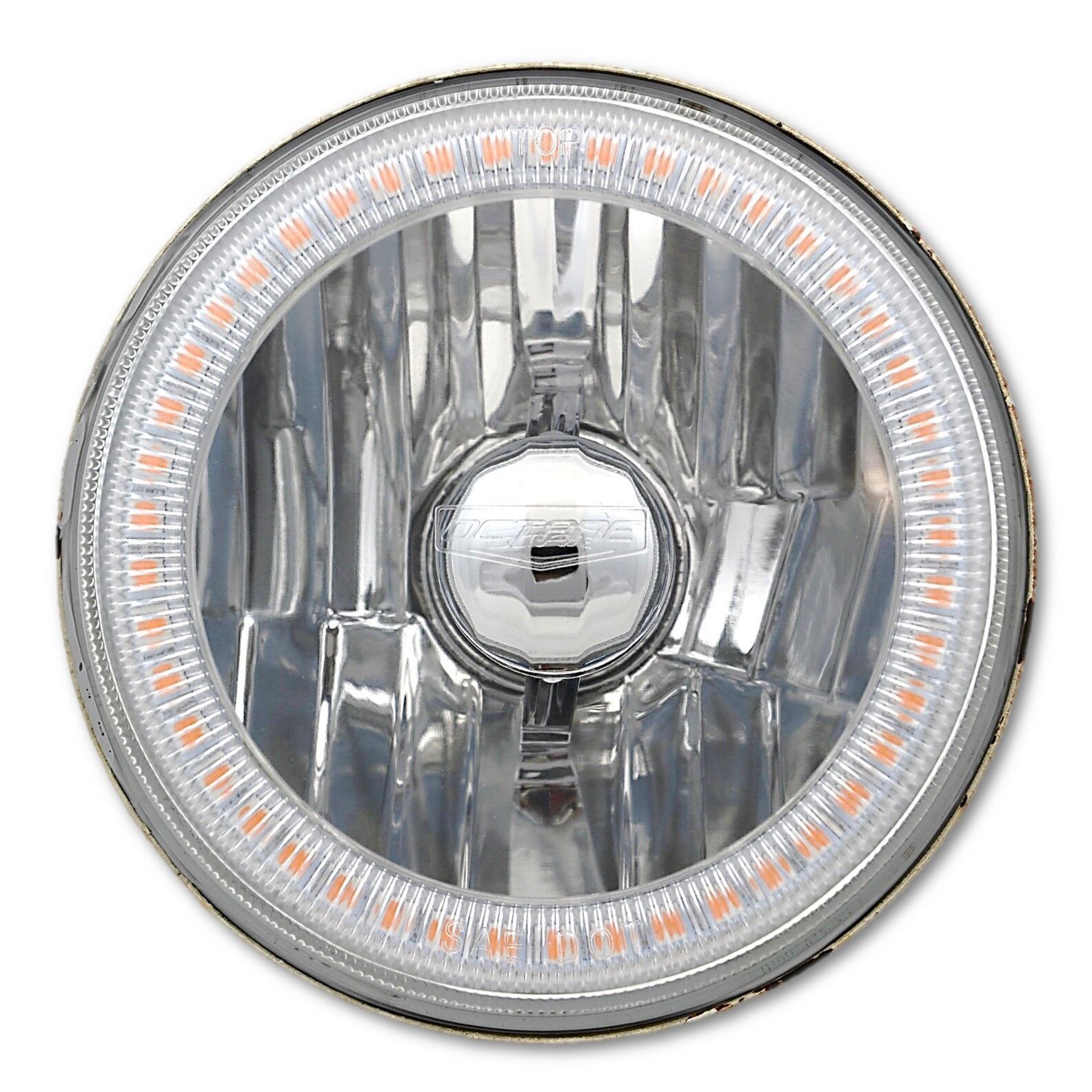 Halogen Crystal Clear Semi-Sealed Beam Glass Faced Headlights With Purple Angel Eye SMD LED Halo Rings!