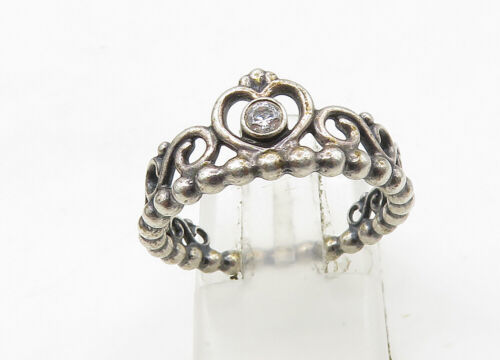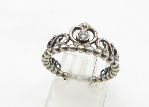 PANDORA 925 Sterling Silver - Vintage Topaz Royal Crown Band Ring Sz 7 - RG21554