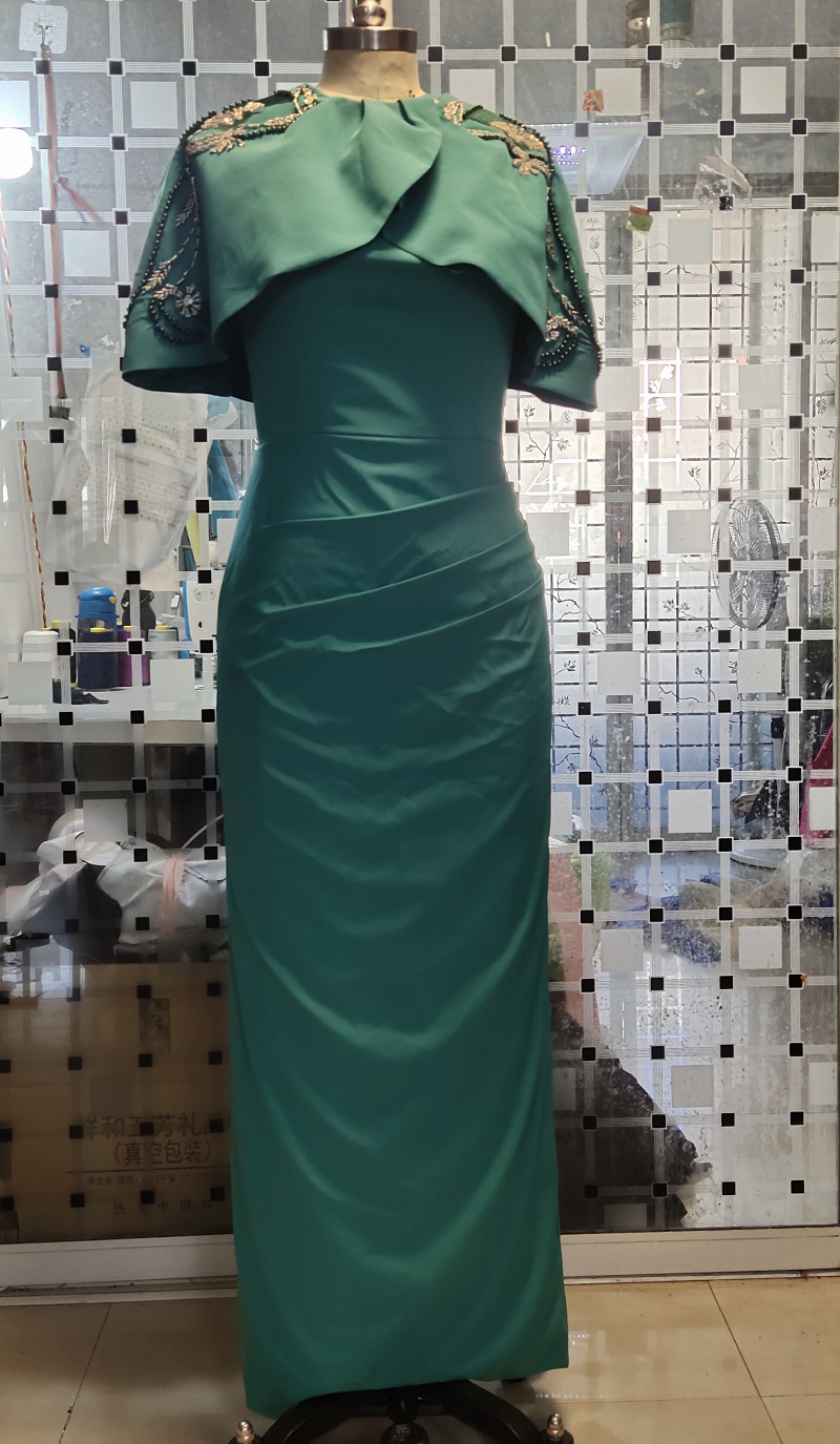 Cha Chang Elegant Bride Mother Dress Green Cloak Dress Flower Embroidery Dress