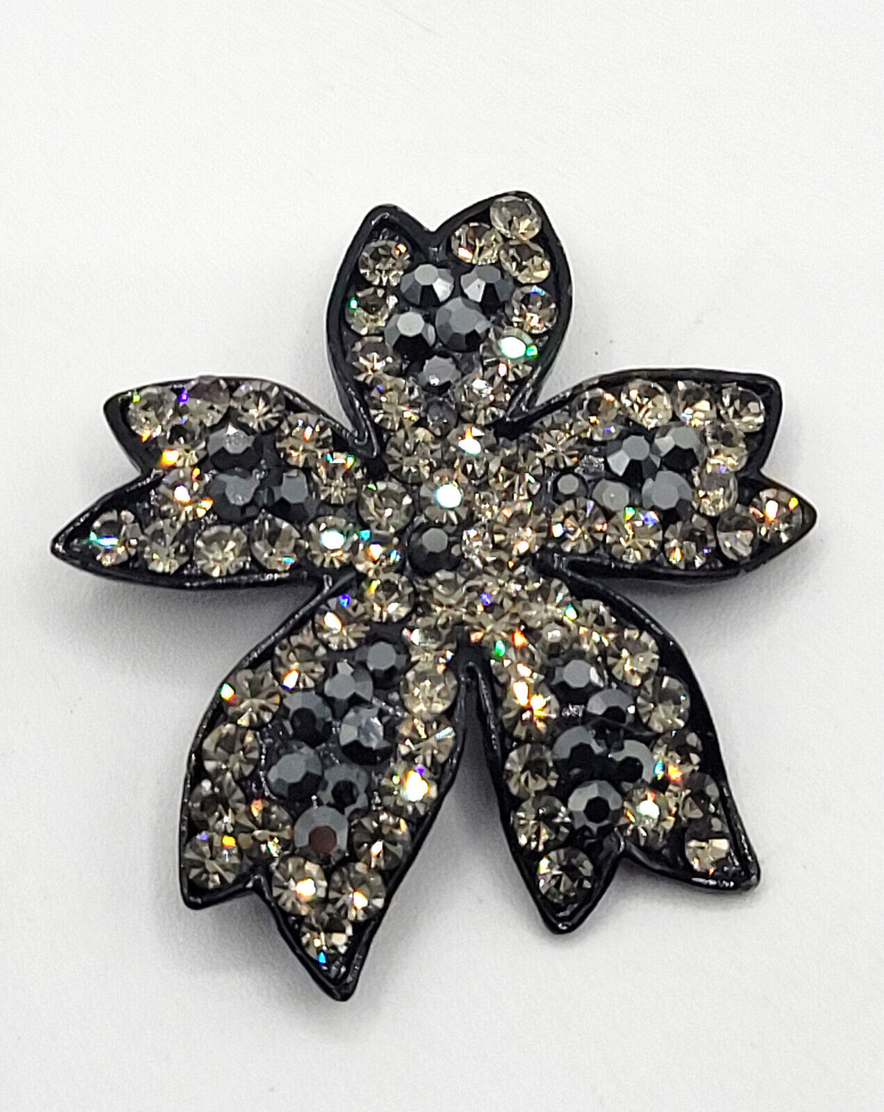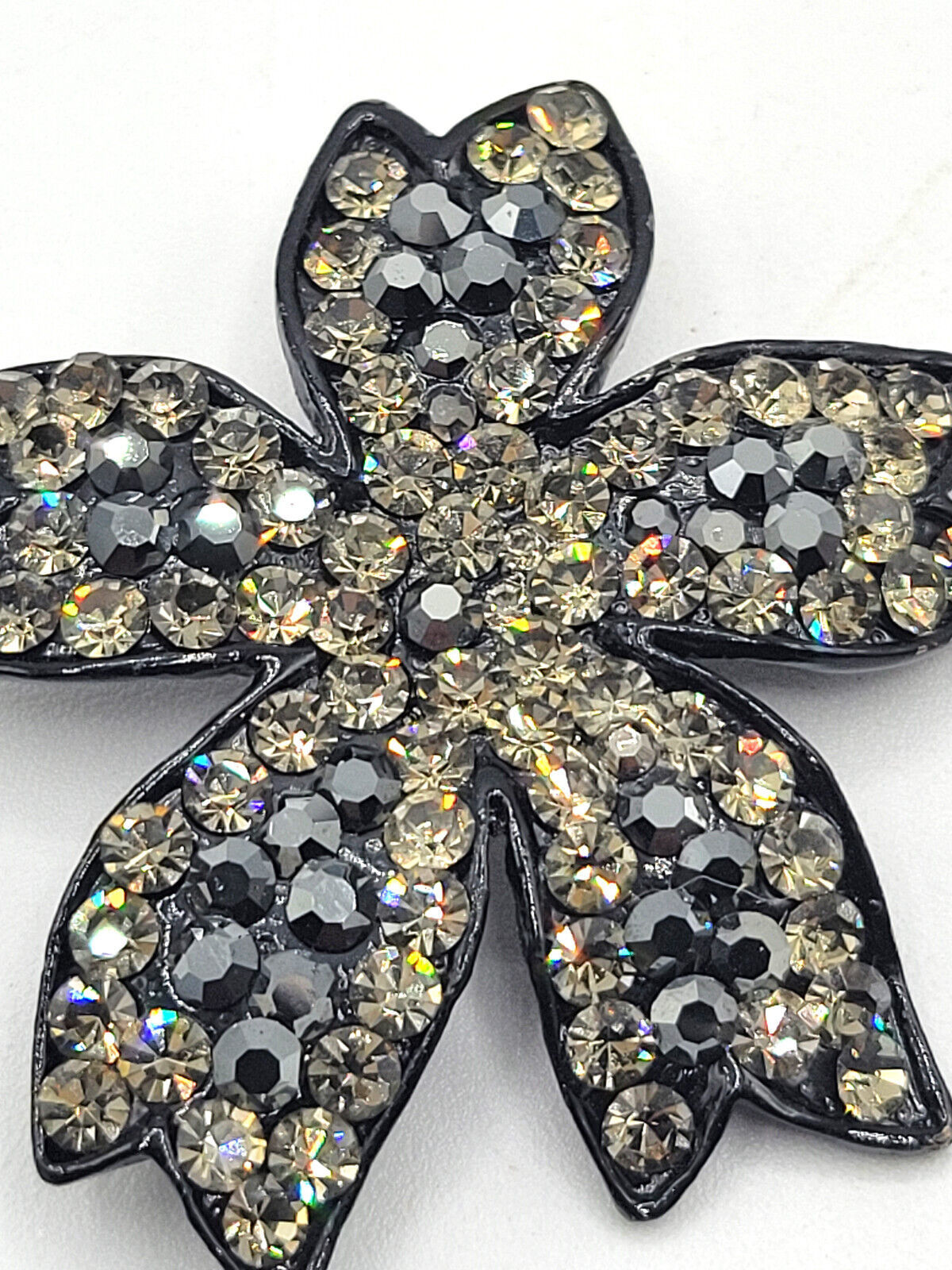 ? Color: Black enameled metal with black and aurora glass rhinestones.