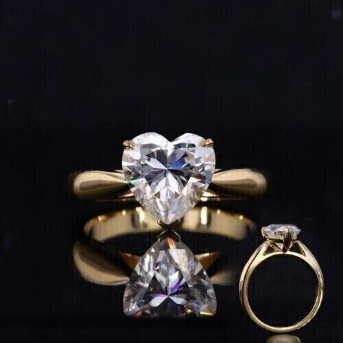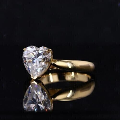 2Ct Heart Cut Moissanite Women's Engagement Wedding Ring 14K Yellow Gold Plated