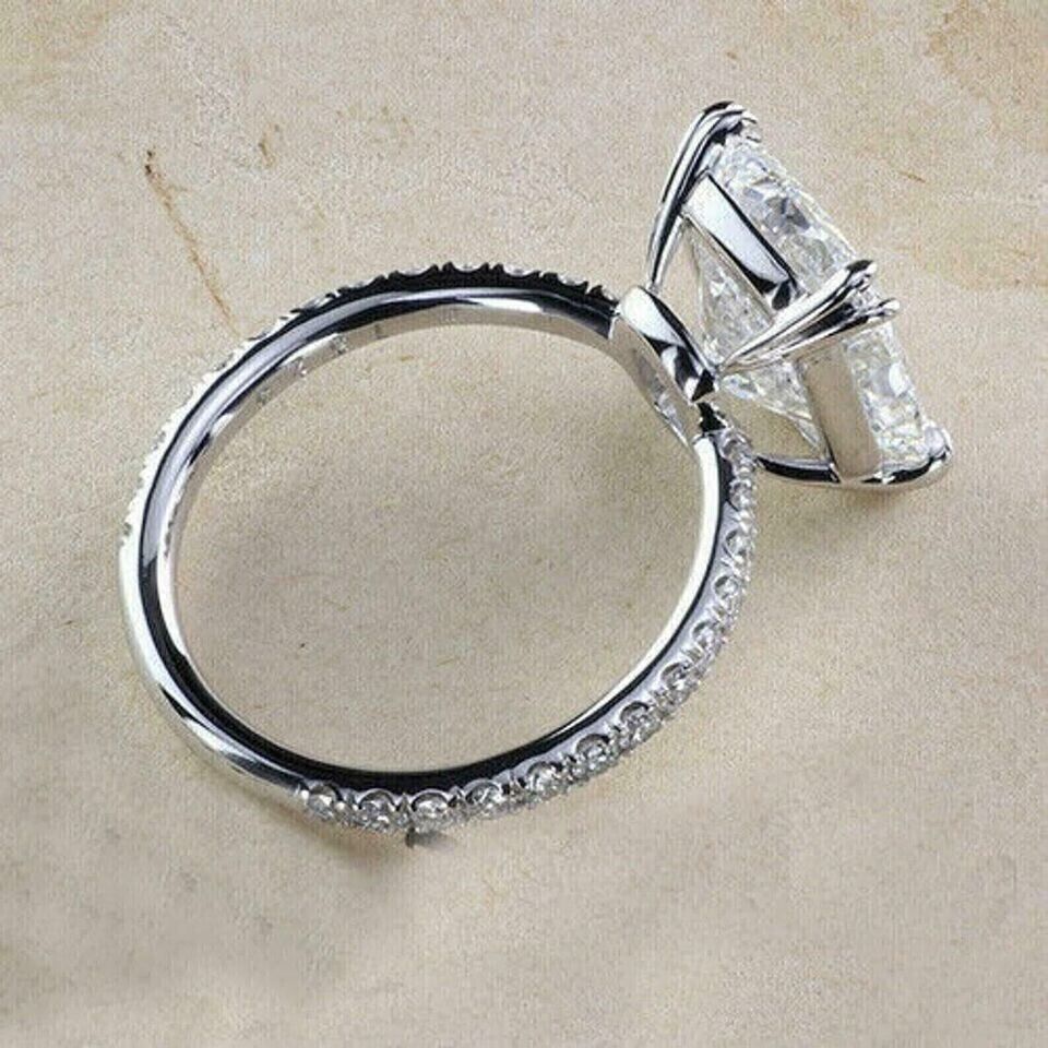 2.50Ct Cushion Cut Moissanite Engagement Wedding Band Ring 14K White Gold Plated