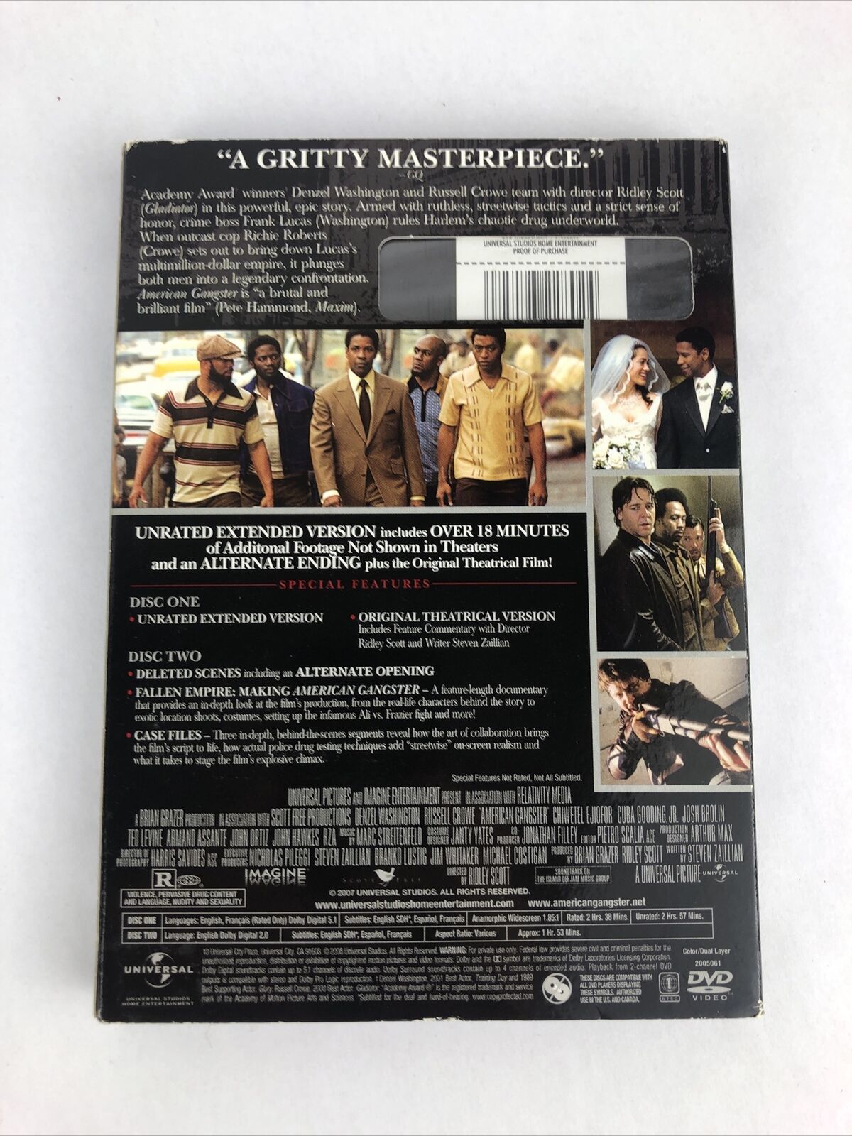 New AMERICAN GANGSTER (DVD, 2007) Unrated Extended Edition Denzel Washington.