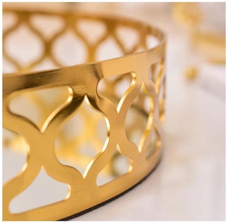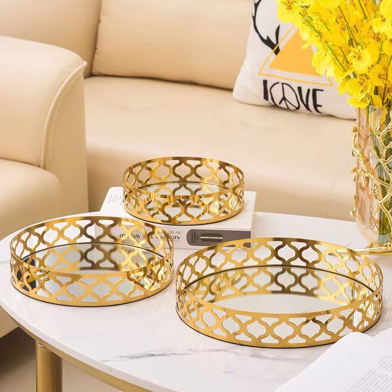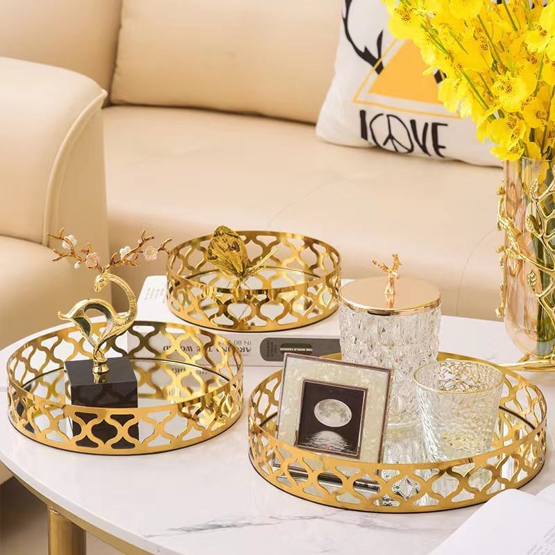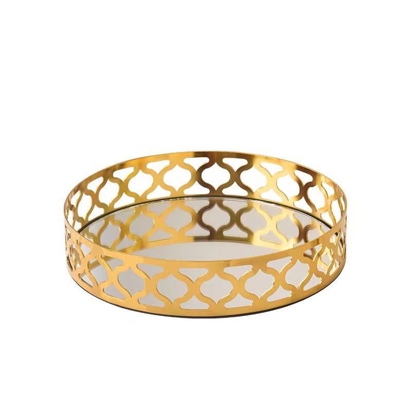 Anyhouz 25cm Gold Round Glass Mirror Base Metal Vanity Food Serving Organizer Je