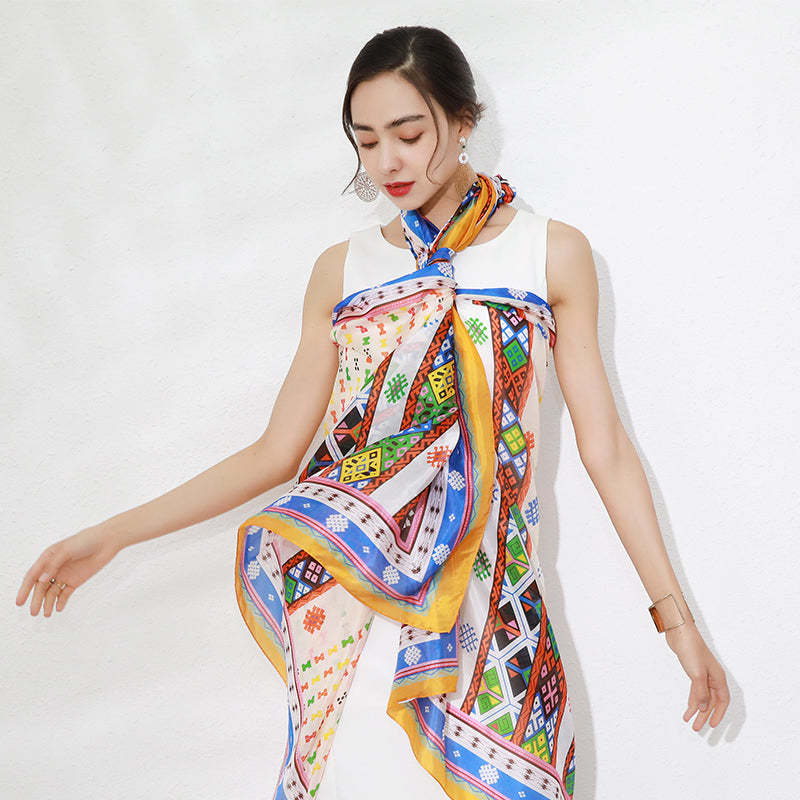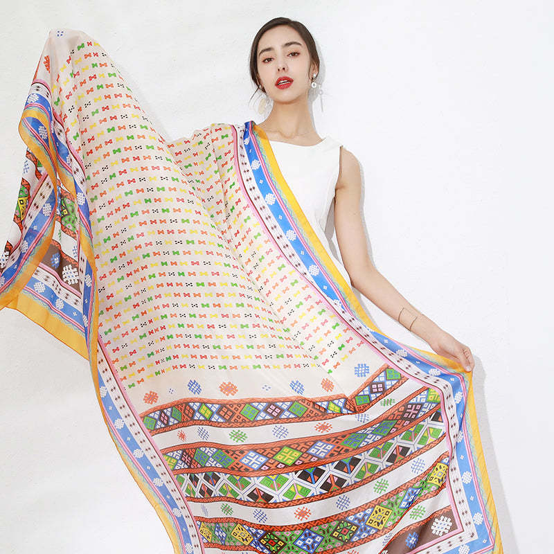 Anyyou 100% Mulberry Silk Light Yellow Long Scarf Luxury Brand Women Beach Shawl