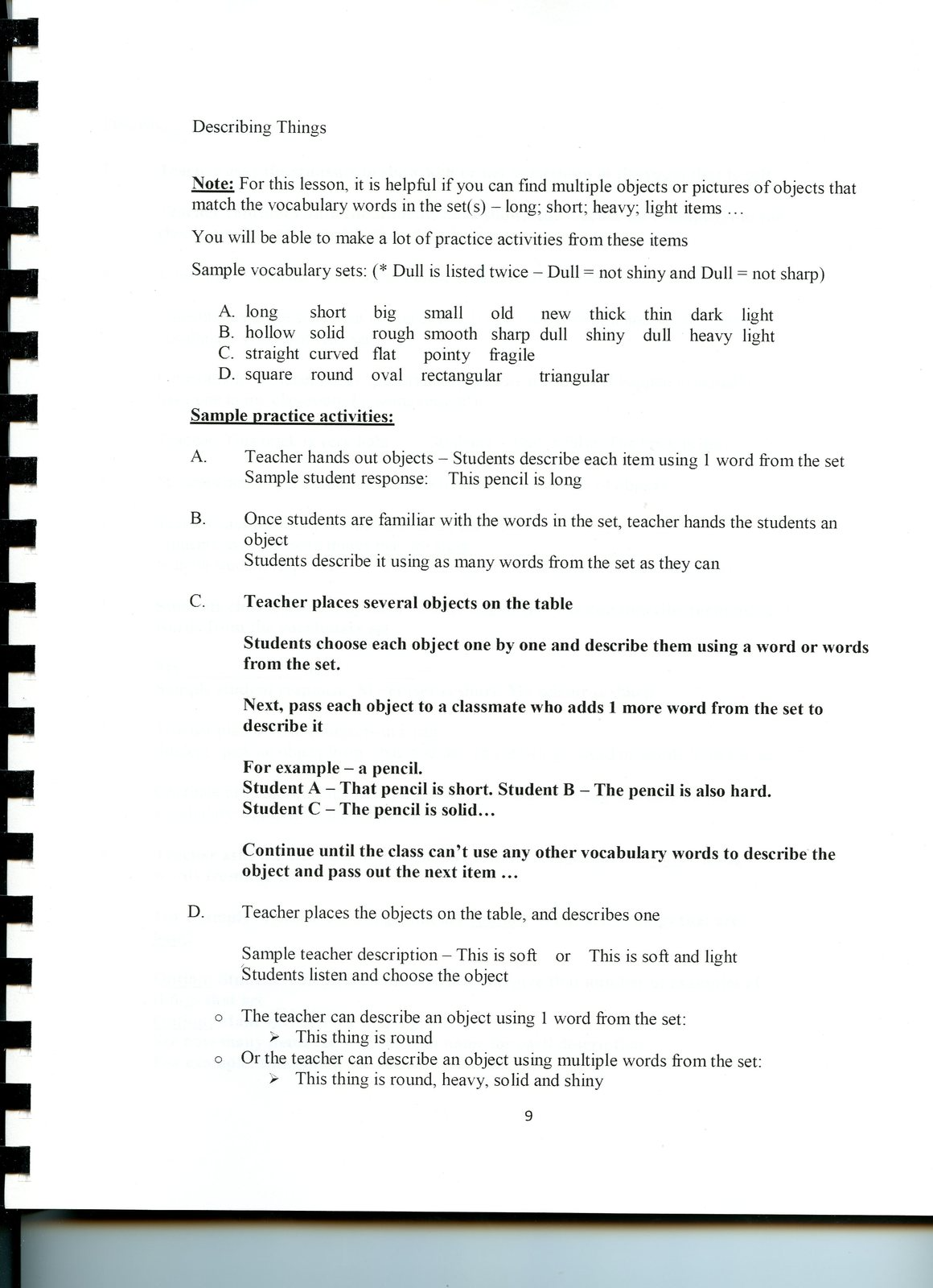 Photo 2 = Sample page 1 Practice Activities for Describing Things
