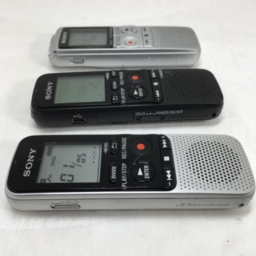 Lot of 3 Genuine Sony Digital Voice Recorders ICD-BX112, ICD-BX800, ICD-PX312. What?s pictured is what you?ll receive. Doesn?t come with any other accessories. Thanks
