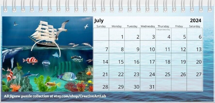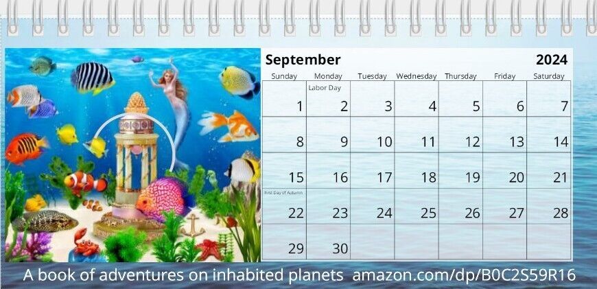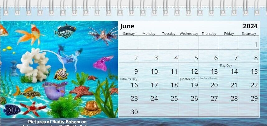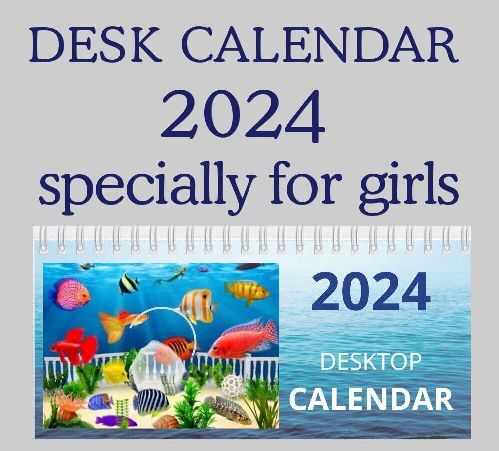 NEW Desk Calendar 2024 for girls, "Underwater World with Mermaids" Free shipping.
